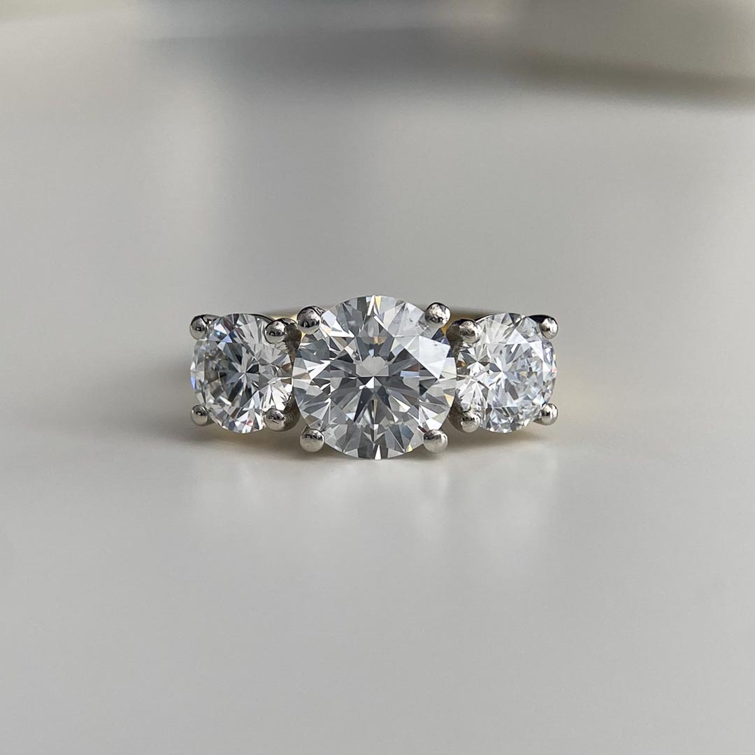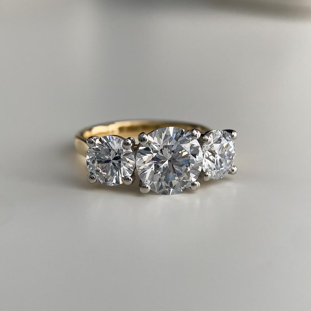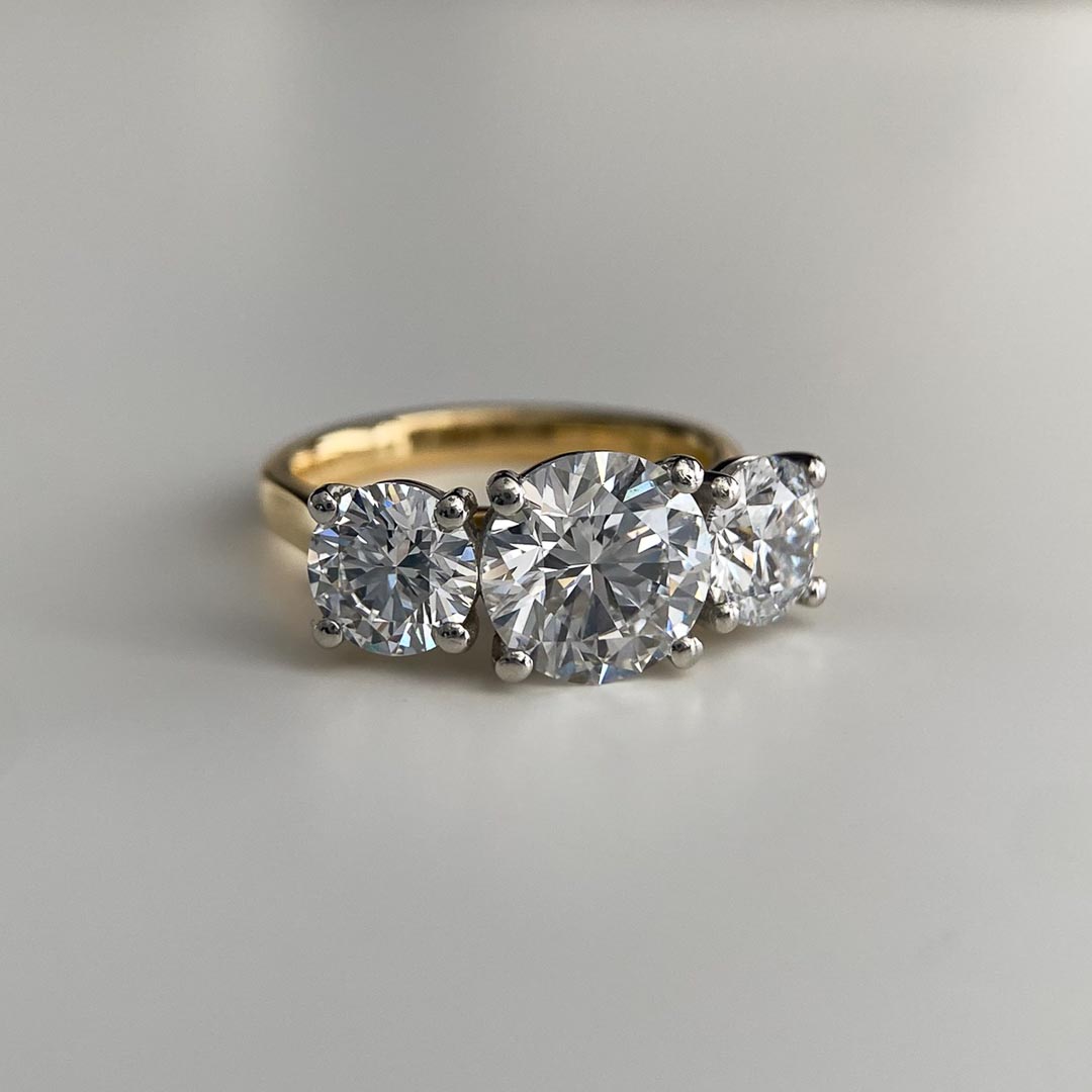 3.63ct Lab-Grown Round Noa Trilogy Diamond Ring in 18K Yellow Gold and Platinum