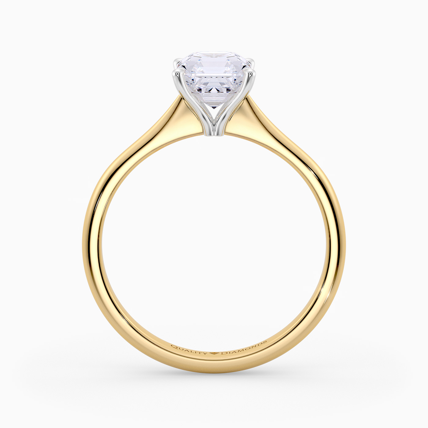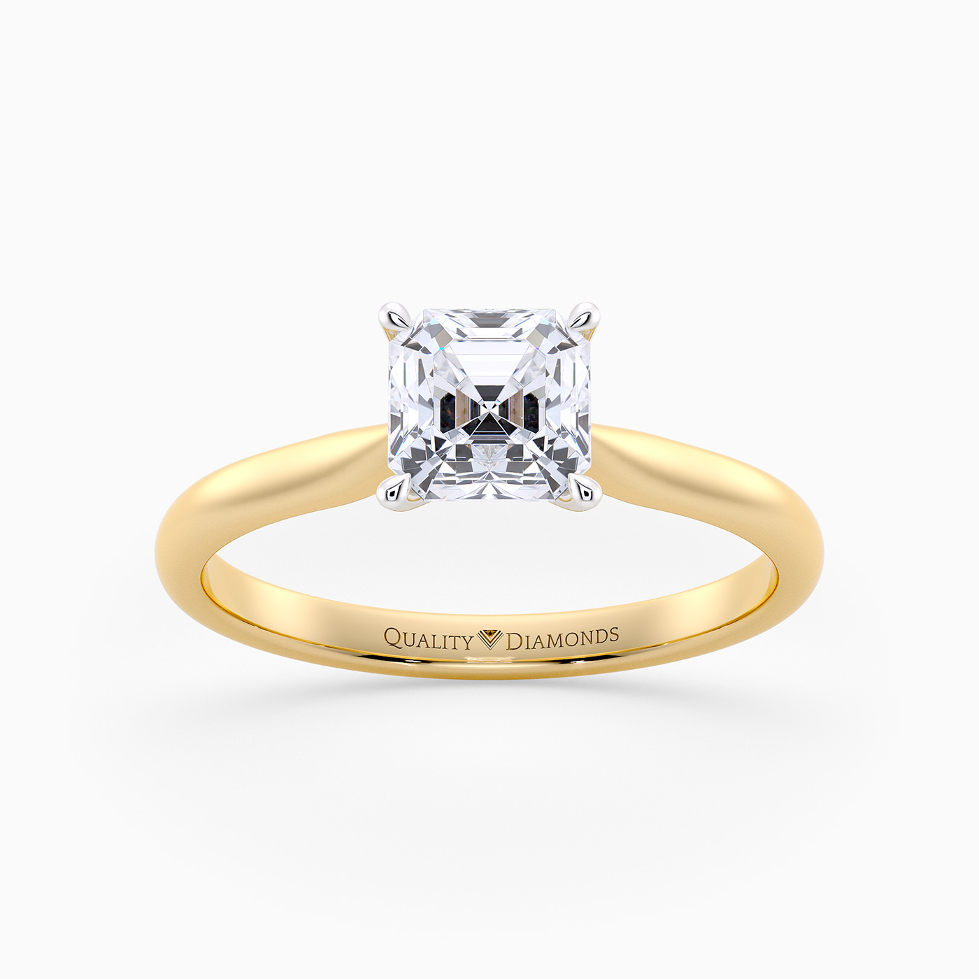 Our classic 18K Yellow Gold solitaire Beau features an elegant four-claw setting to secure the Asscher diamond, with the claws creating a V shape from the side detail to complement the sparkle. With no side bezel, this setting truly maximises the amount of light able to pass through the diamond.