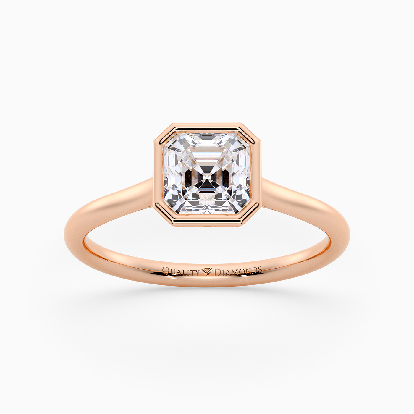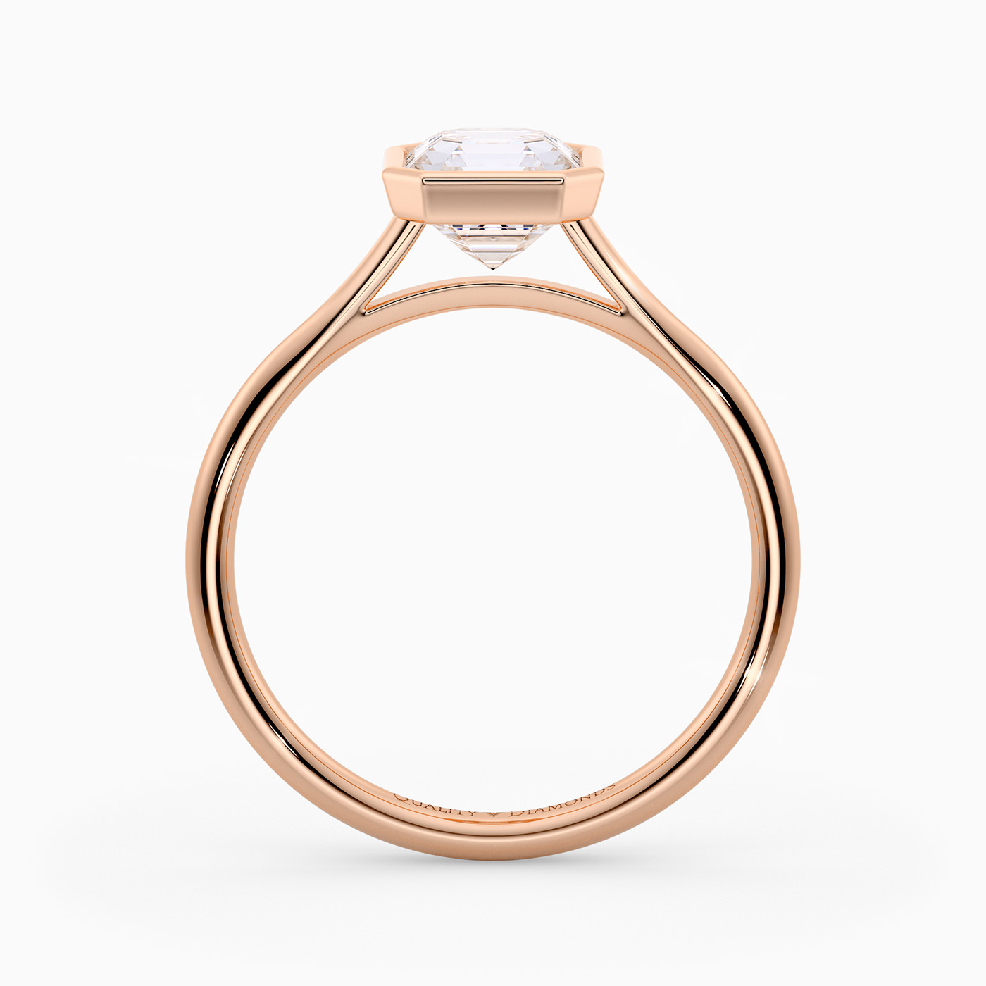 Our contemporary 18K Rose Gold solitaire Carina holds the Asscher diamond in a modern bezel setting, complementing the elegant design. The rounded band finishes off the contemporary design beautifully.