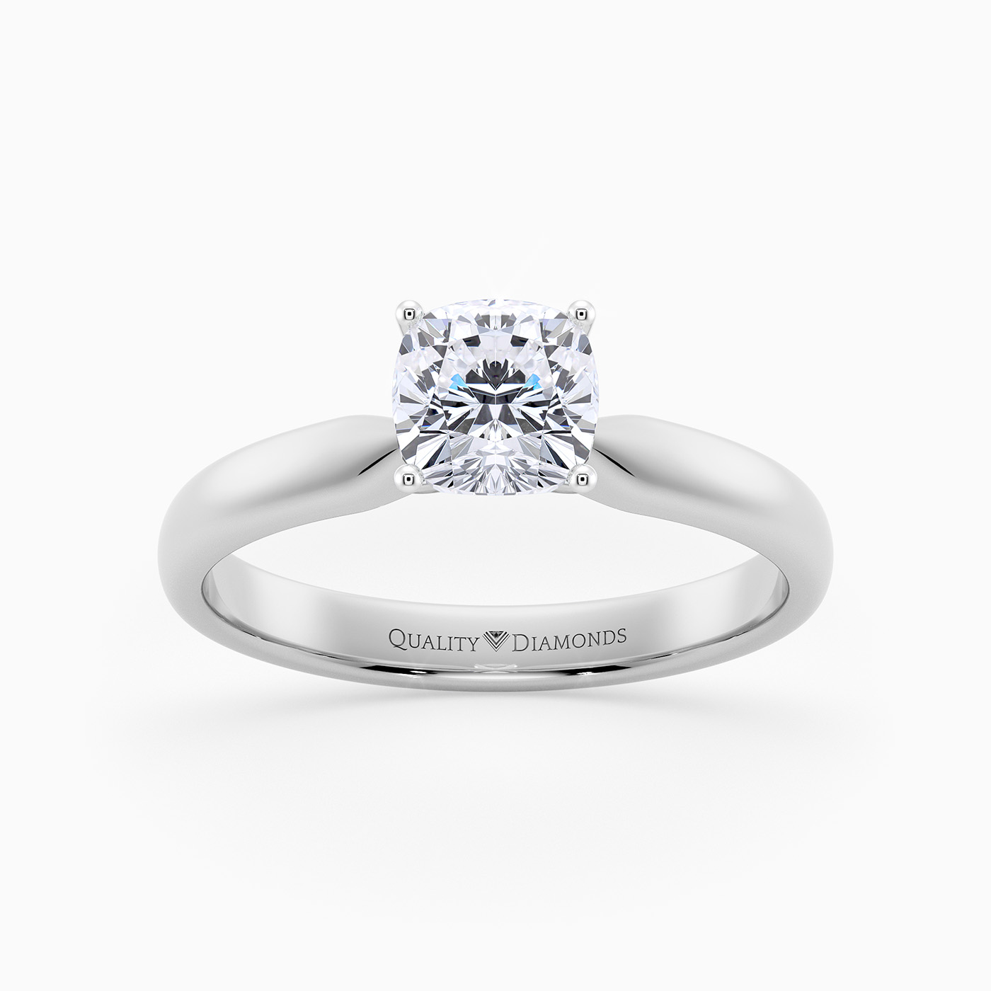 Our classic 9K White Gold solitaire Amia features a delicate four-claw Tiffany-style setting to secure the Cushion diamond. With the open detailing and delicate band, this setting allows light to flood through the diamond, maximising sparkle and brilliance.