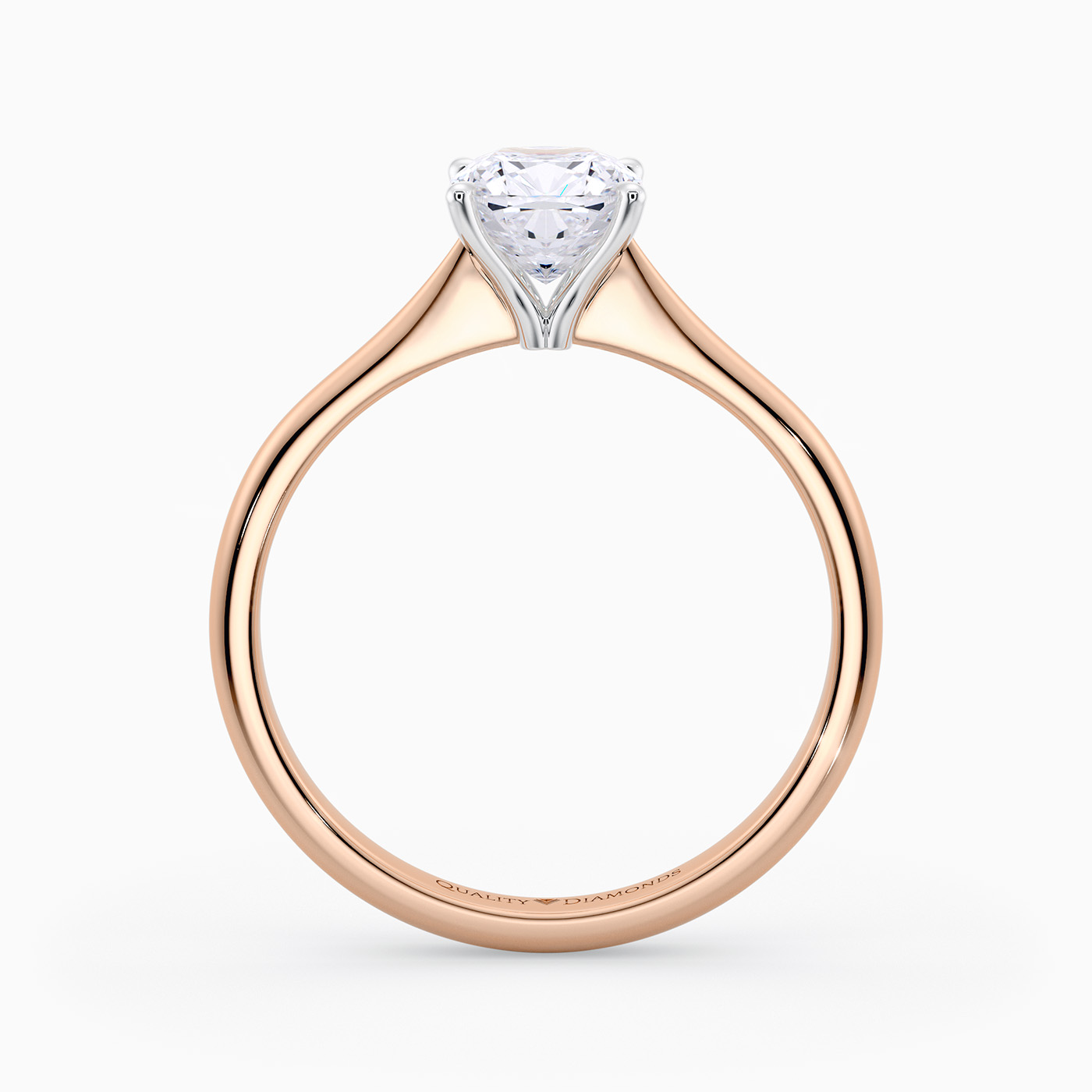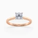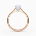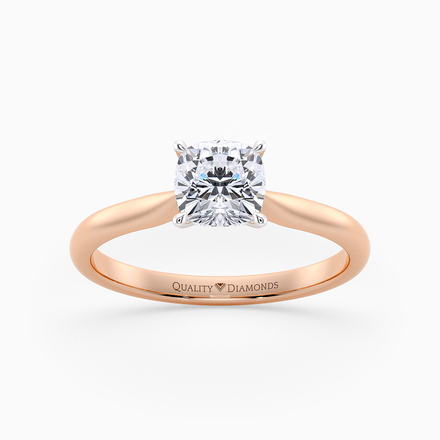 Our classic 18K Rose Gold solitaire Beau features an elegant four-claw setting to secure the Cushion diamond, with the claws creating a V shape from the side detail to complement the sparkle. With no side bezel, this setting truly maximises the amount of light able to pass through the diamond.