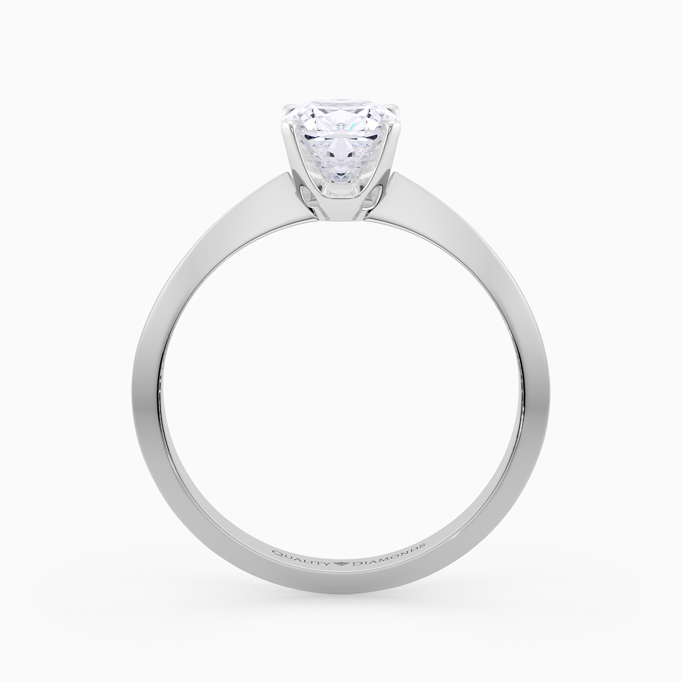 Our classic Platinum solitaire Carella holds the Cushion diamond proudly in a secure four-claw setting, to complement the sparkle. The shoulders taper to a knife-edge, elevating the diamond to fully display its dramatic beauty.