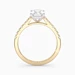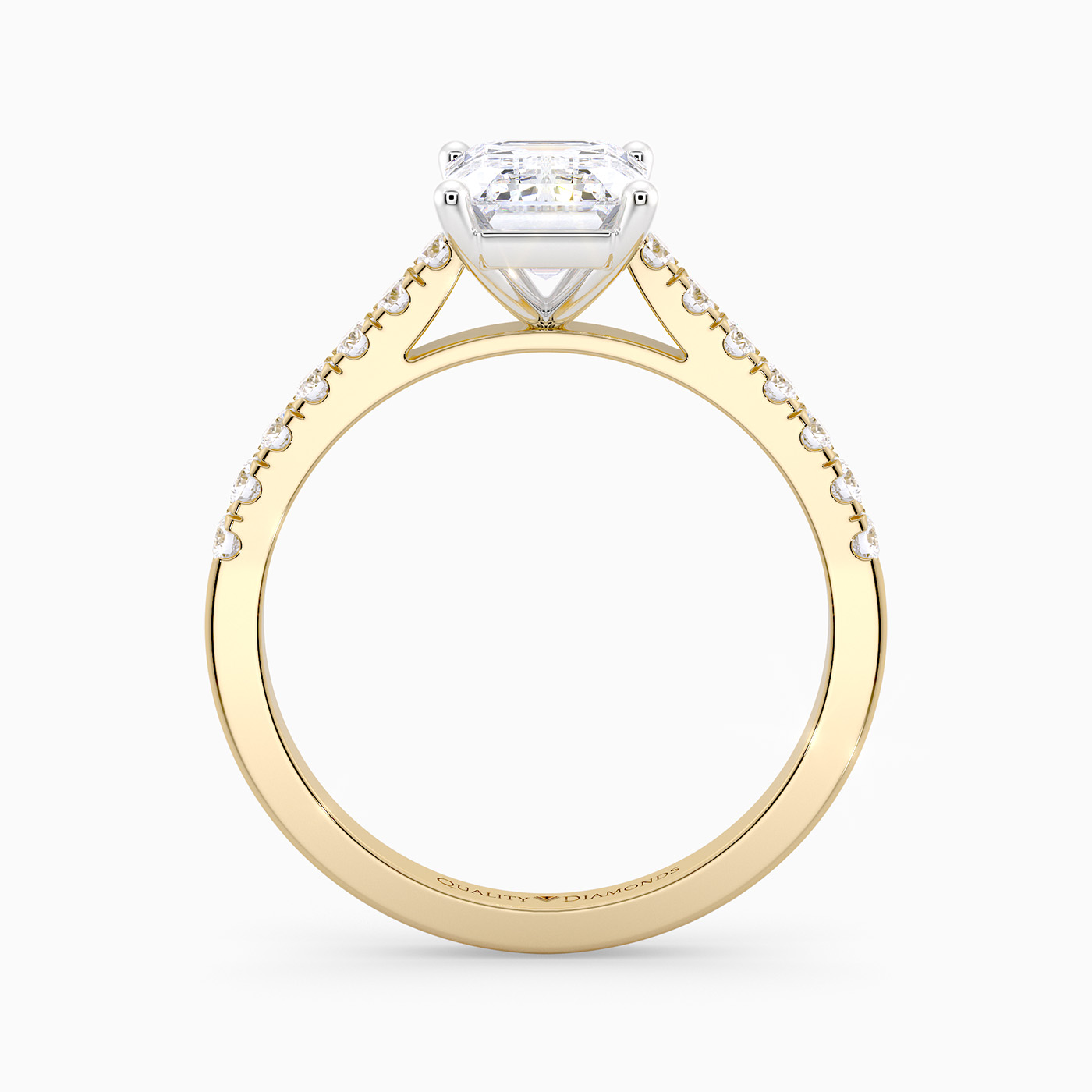 Our Classic 18K Yellow Gold Vintage Milena features Four Claws securing the Emerald Cut Diamond, with open detailing at the sides to allow the light to complement the Diamond. The Round Brilliant Diamonds are set into each shoulder creating an extra sparkly detail totalling 0.22cts.