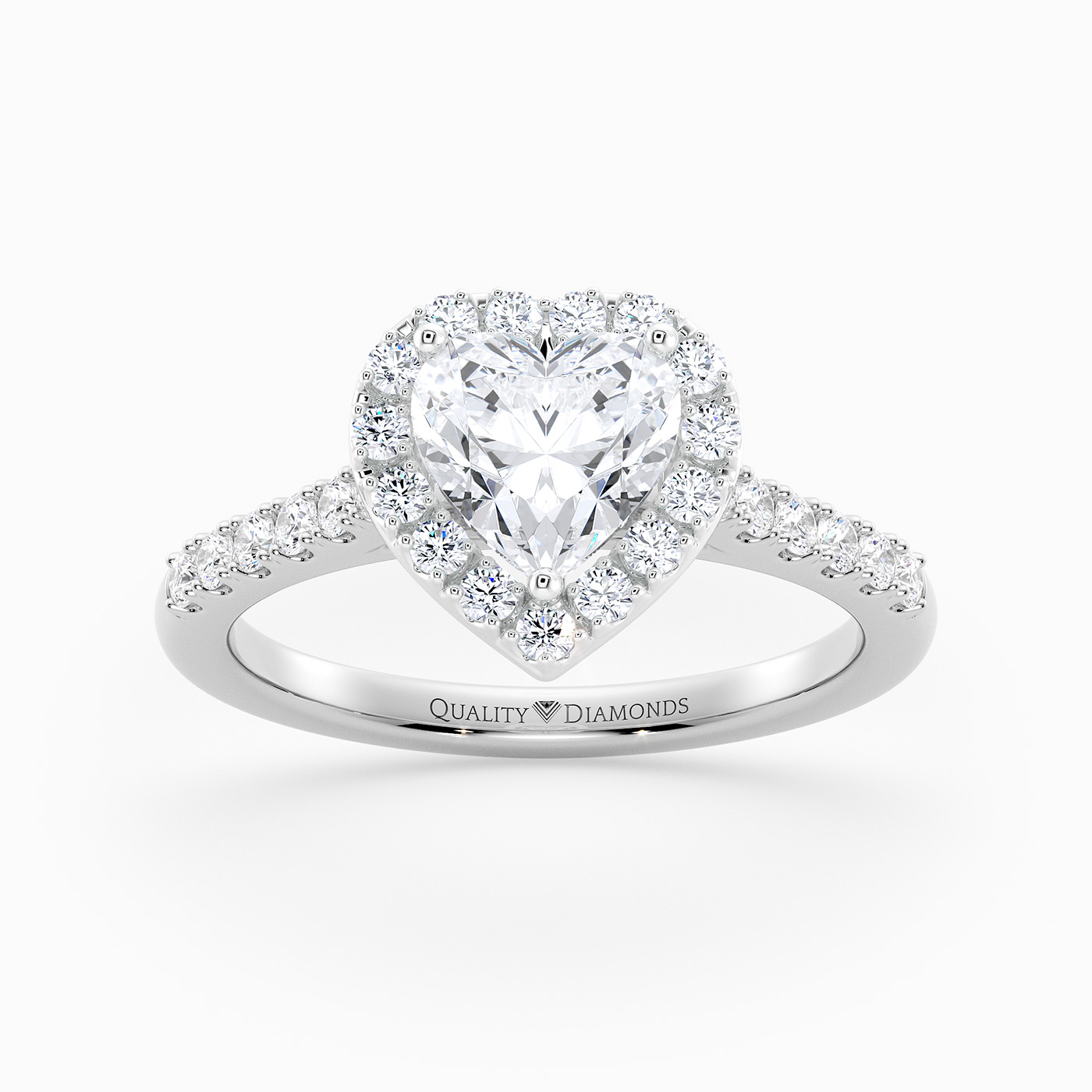 Our Heart Cut 9K White Gold Halo Bijou holds the central diamond in a three-claw setting with surrounding brilliant round diamonds micro-pave set in the shoulders. This very Sparkly Vintage Style captures the light beautifully, creating a dramatic and eye-catching design.