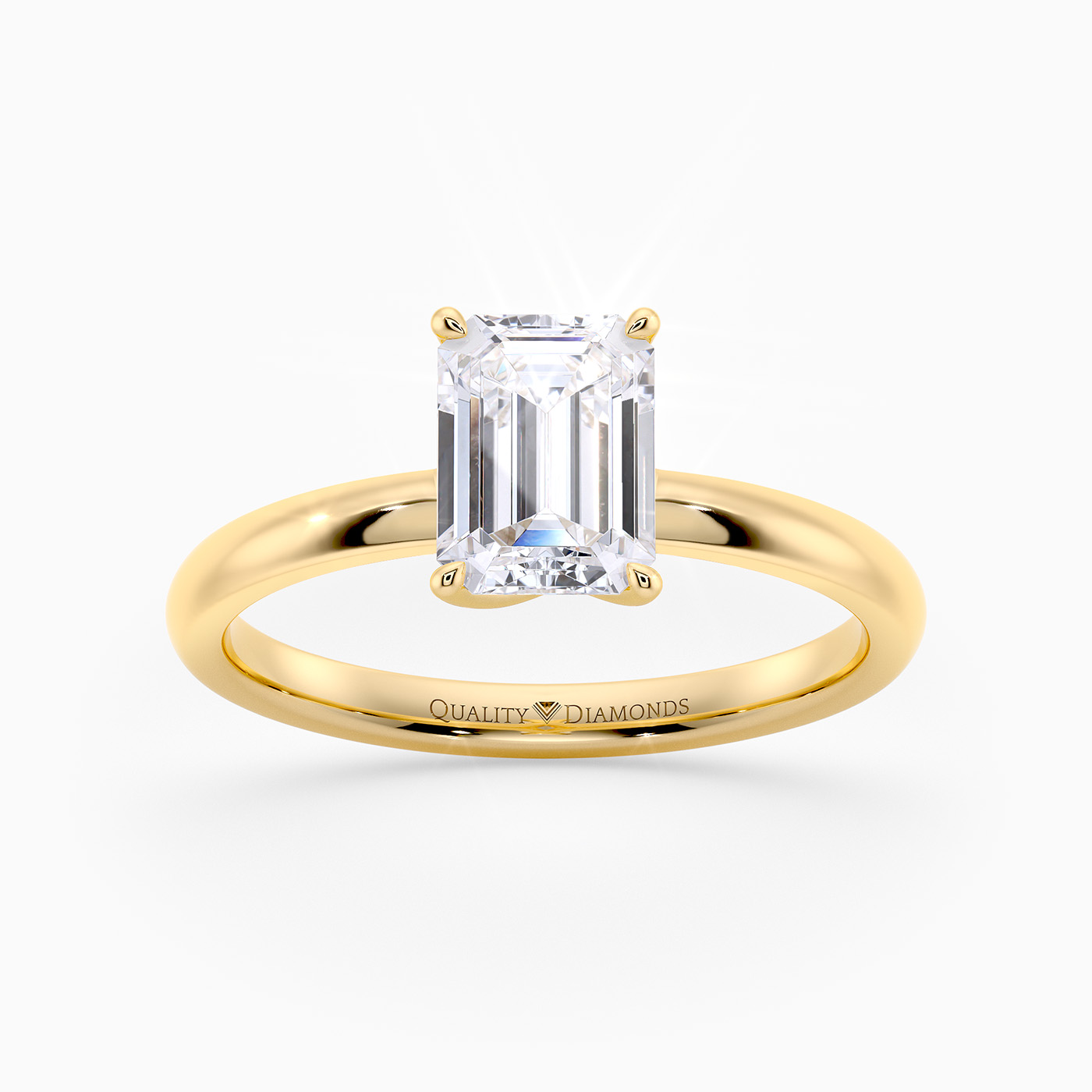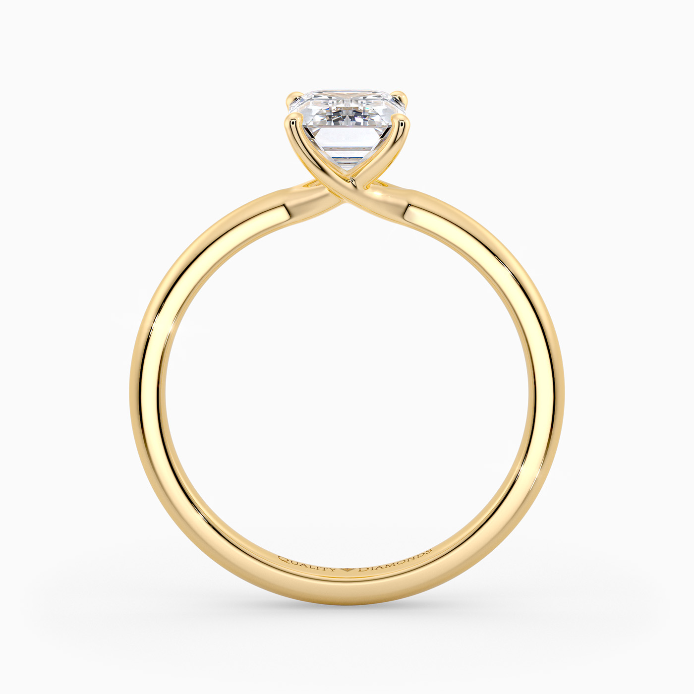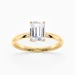 Our 18K Yellow Gold solitaire Abbraccio holds the Emerald diamond proudly in a flowing twist four-claw setting. The delicate prongs are positioned to maximise light passing through the diamond and produce the most exquisite sparkle.
