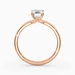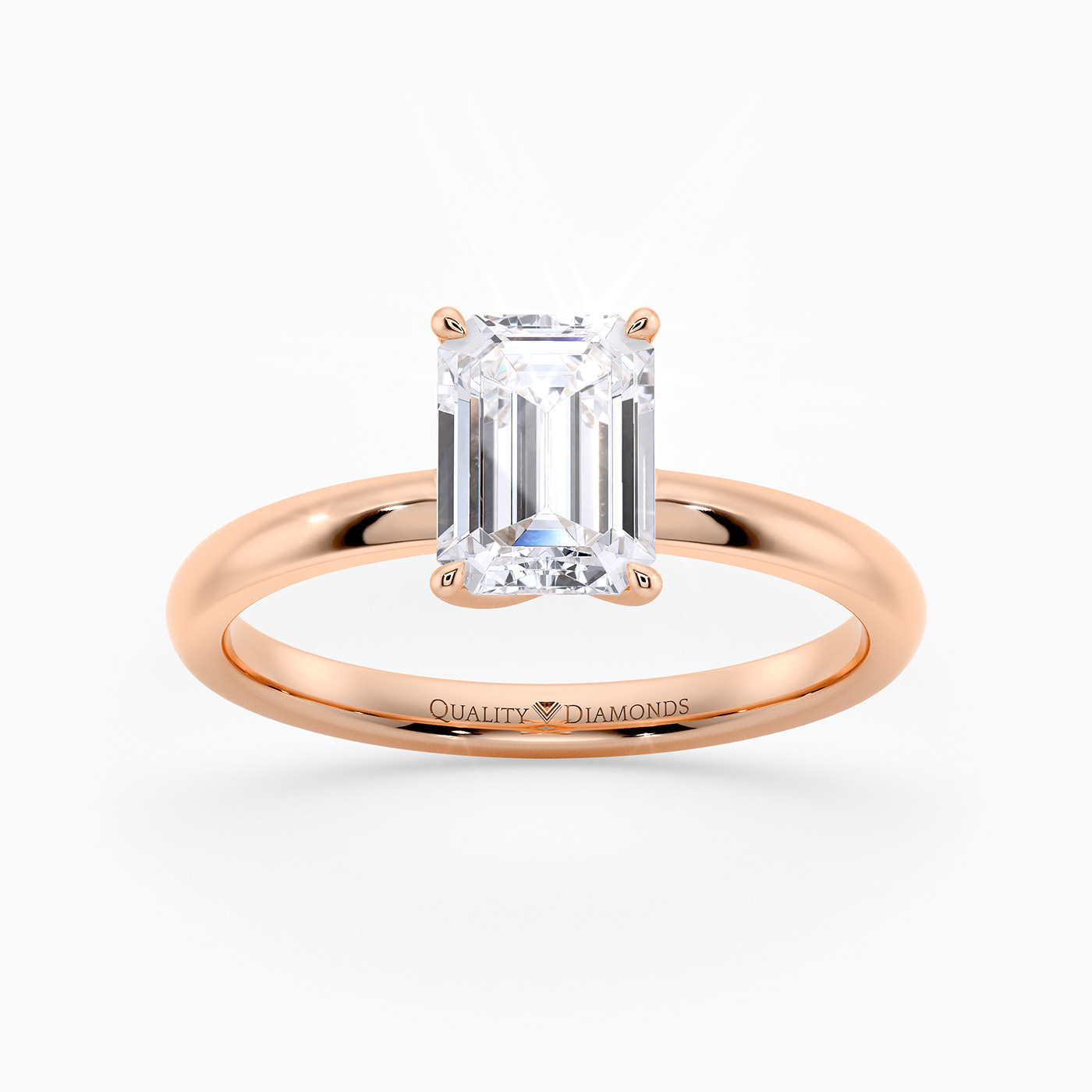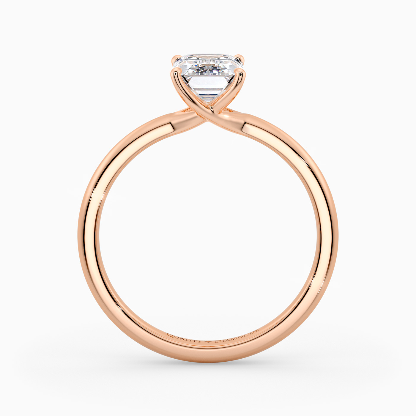 Our 9K Rose Gold solitaire Abbraccio holds the Emerald diamond proudly in a flowing twist four-claw setting. The delicate prongs are positioned to maximise light passing through the diamond and produce the most exquisite sparkle.
