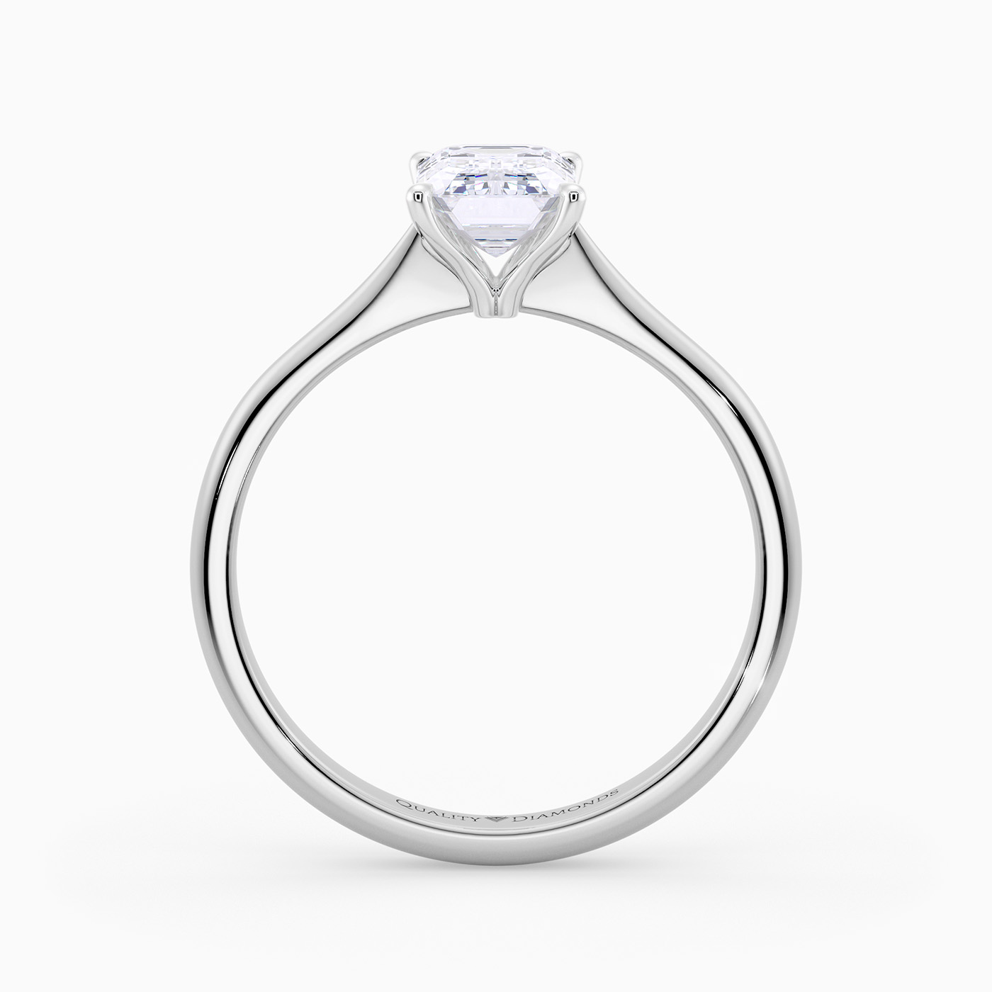 Our classic Platinum solitaire Beau features an elegant four-claw setting to secure the Emerald diamond, with the claws creating a V shape from the side detail to complement the sparkle. With no side bezel, this setting truly maximises the amount of light able to pass through the diamond.