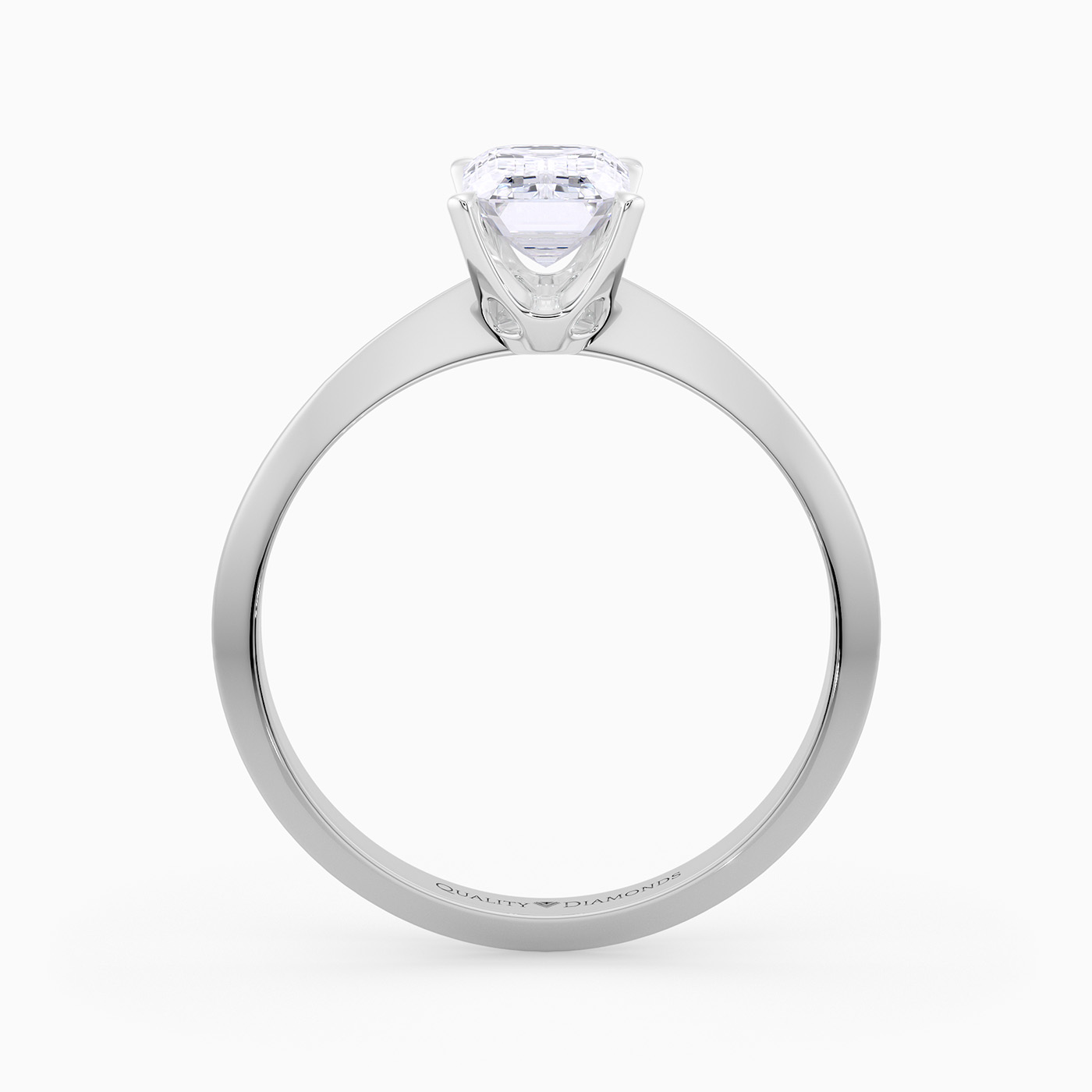 Our classic Platinum solitaire Carella holds the Emerald diamond proudly in a secure four-claw setting, to complement the sparkle. The shoulders taper to a knife-edge, elevating the diamond to fully display its dramatic beauty.