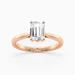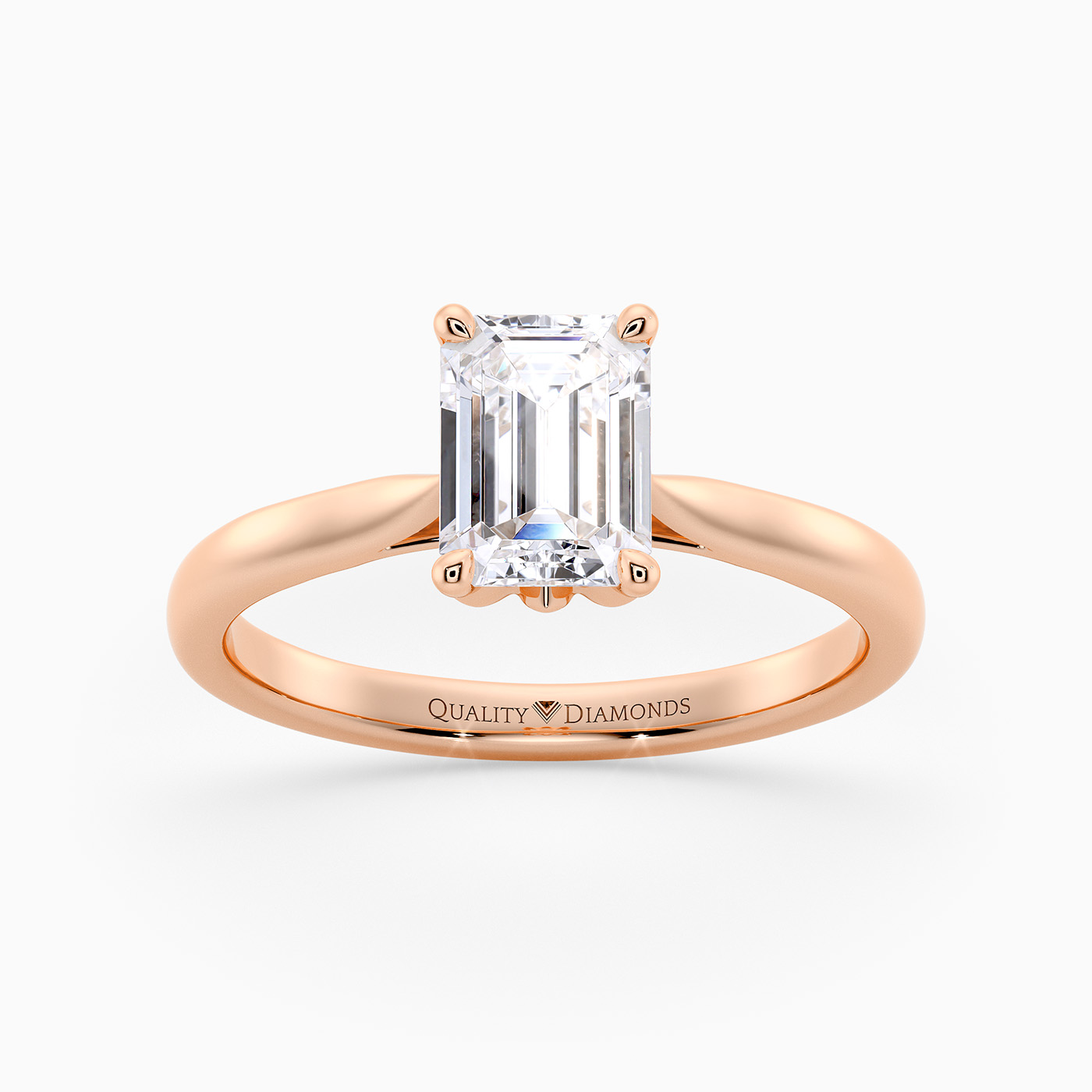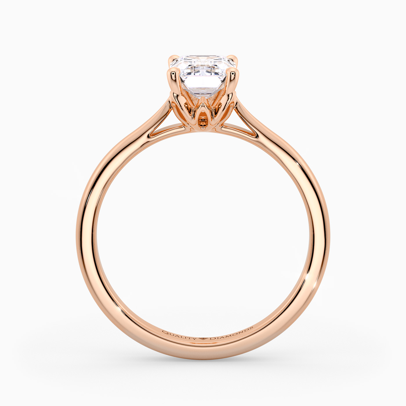 Our classic 9K Rose Gold solitaire Flor features a delicate, sculpted, floral four-claw setting for the Emerald diamond. The classic court-shaped band splits and gently tapers, drawing attention to the diamond.