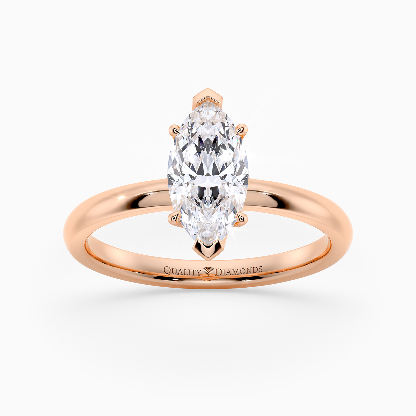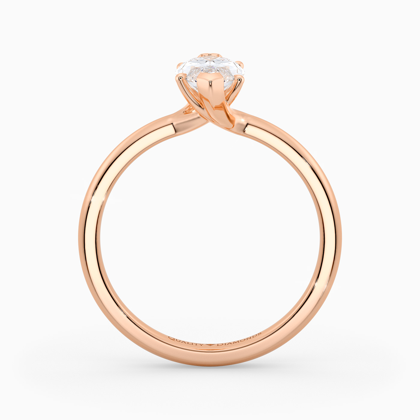 Our 18K Rose Gold solitaire Abbraccio holds the Marquise diamond proudly in a flowing twist six-claw setting. The delicate prongs are positioned to maximise light passing through the diamond and produce the most exquisite sparkle.