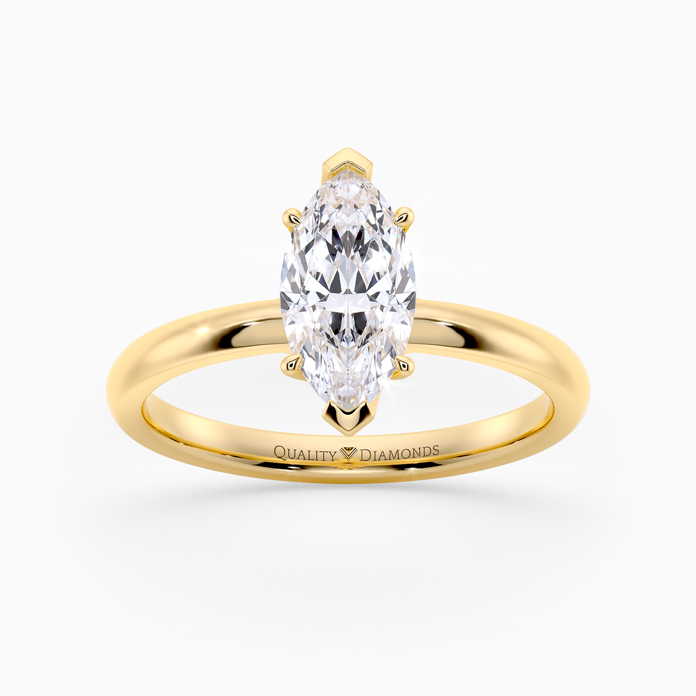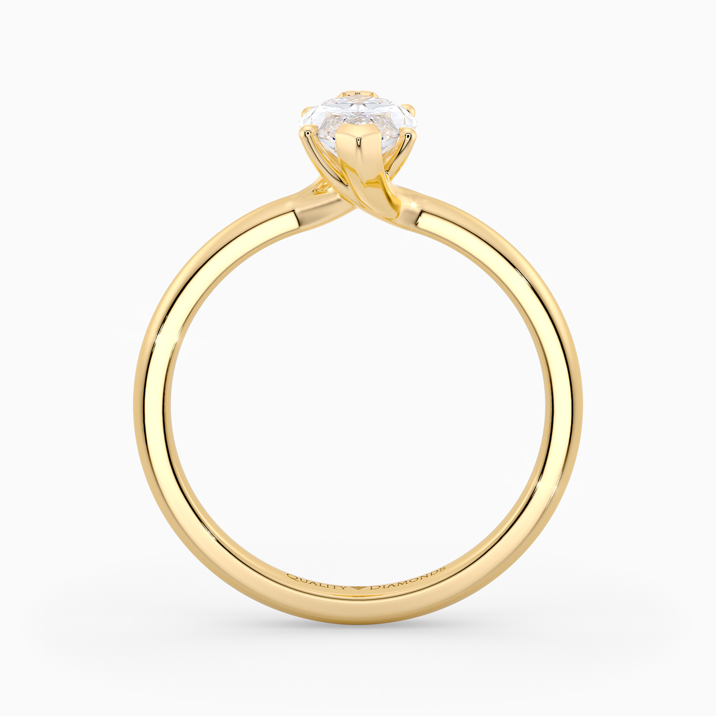 Our 18K Yellow Gold solitaire Abbraccio holds the Marquise diamond proudly in a flowing twist six-claw setting. The delicate prongs are positioned to maximise light passing through the diamond and produce the most exquisite sparkle.