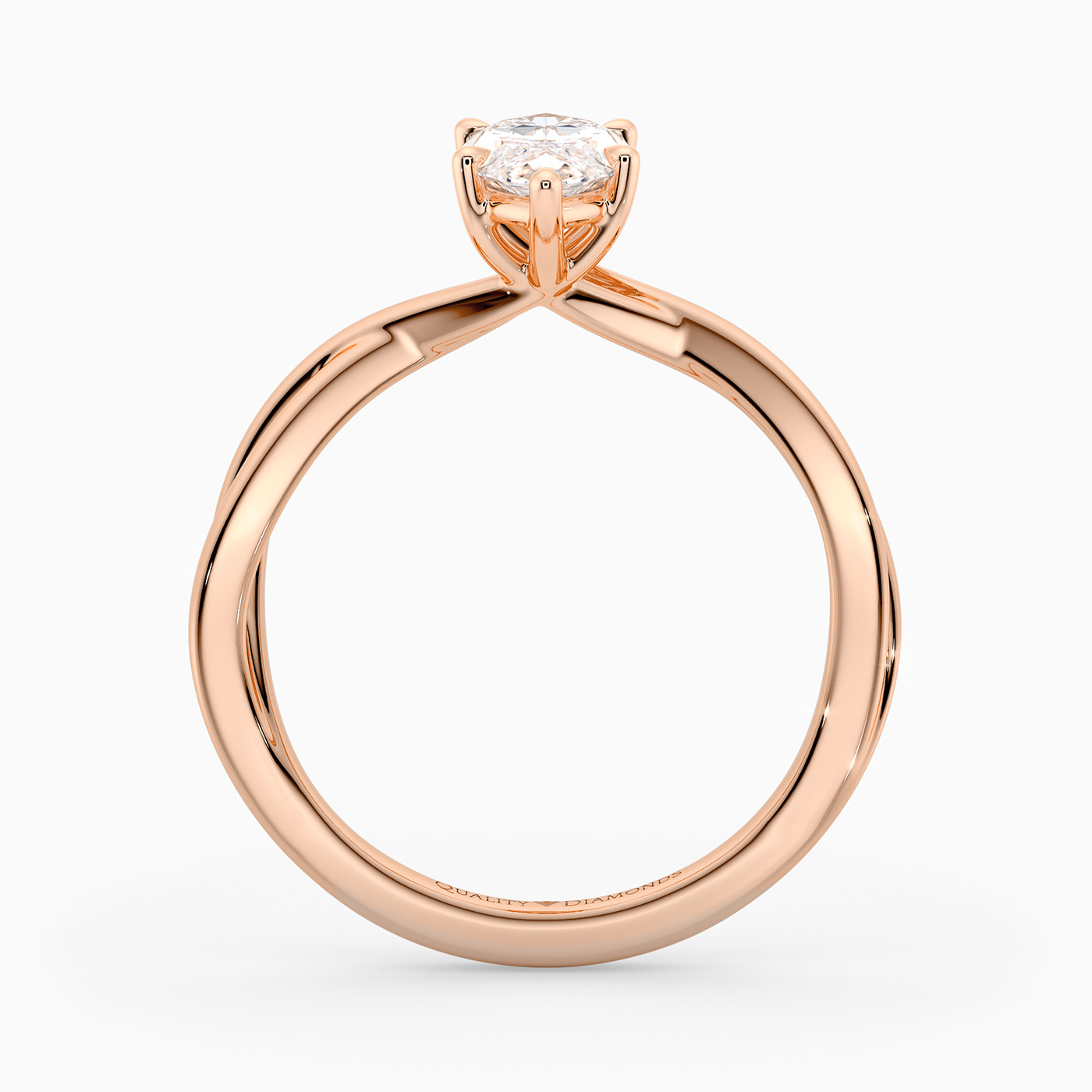 Our elegant 18K Rose Gold solitaire Grazia holds the Marquise diamond in a delicate six-claw organic twist setting, creating a sense of movement and fluidity. The band gently splits as it rises towards the diamond, complementing its sparkle.