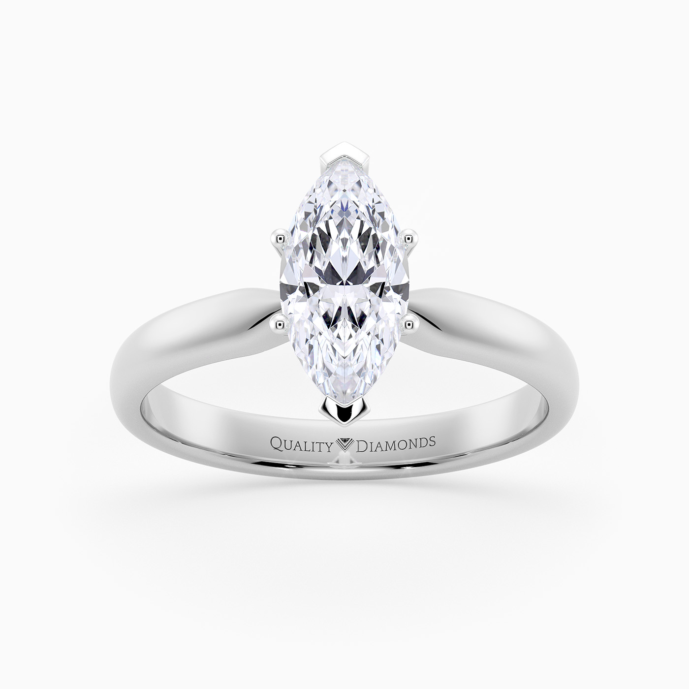 Our classic 18K White Gold solitaire Amia features a delicate six-claw Tiffany-style setting to secure the Marquise diamond. With the open detailing and delicate band, this setting allows light to flood through the diamond, maximising sparkle and brilliance.