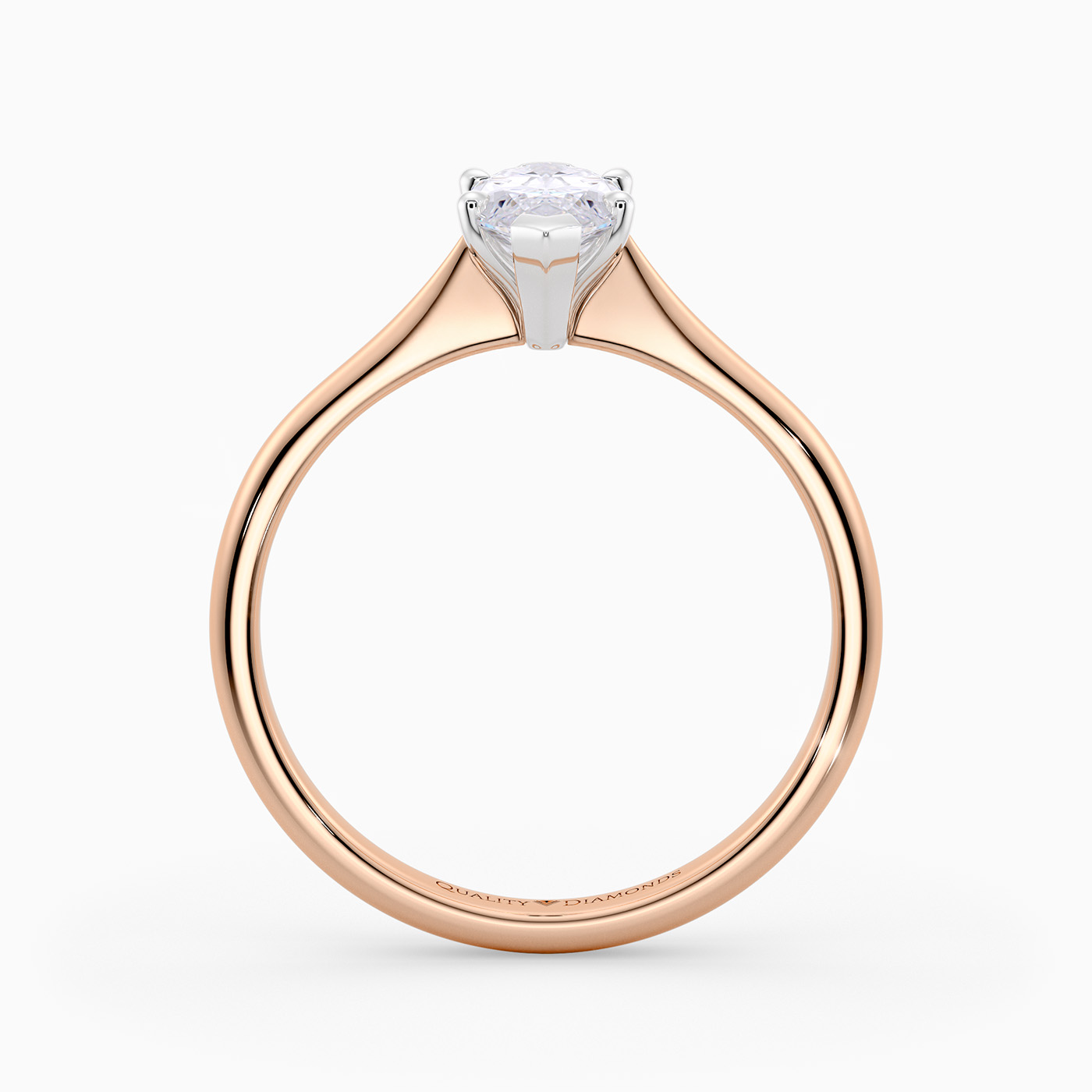 Our classic 9K Rose Gold solitaire Beau features an elegant six-claw setting to secure the Marquise diamond, with the claws creating a V shape from the side detail to complement the sparkle. With no side bezel, this setting truly maximises the amount of light able to pass through the diamond.