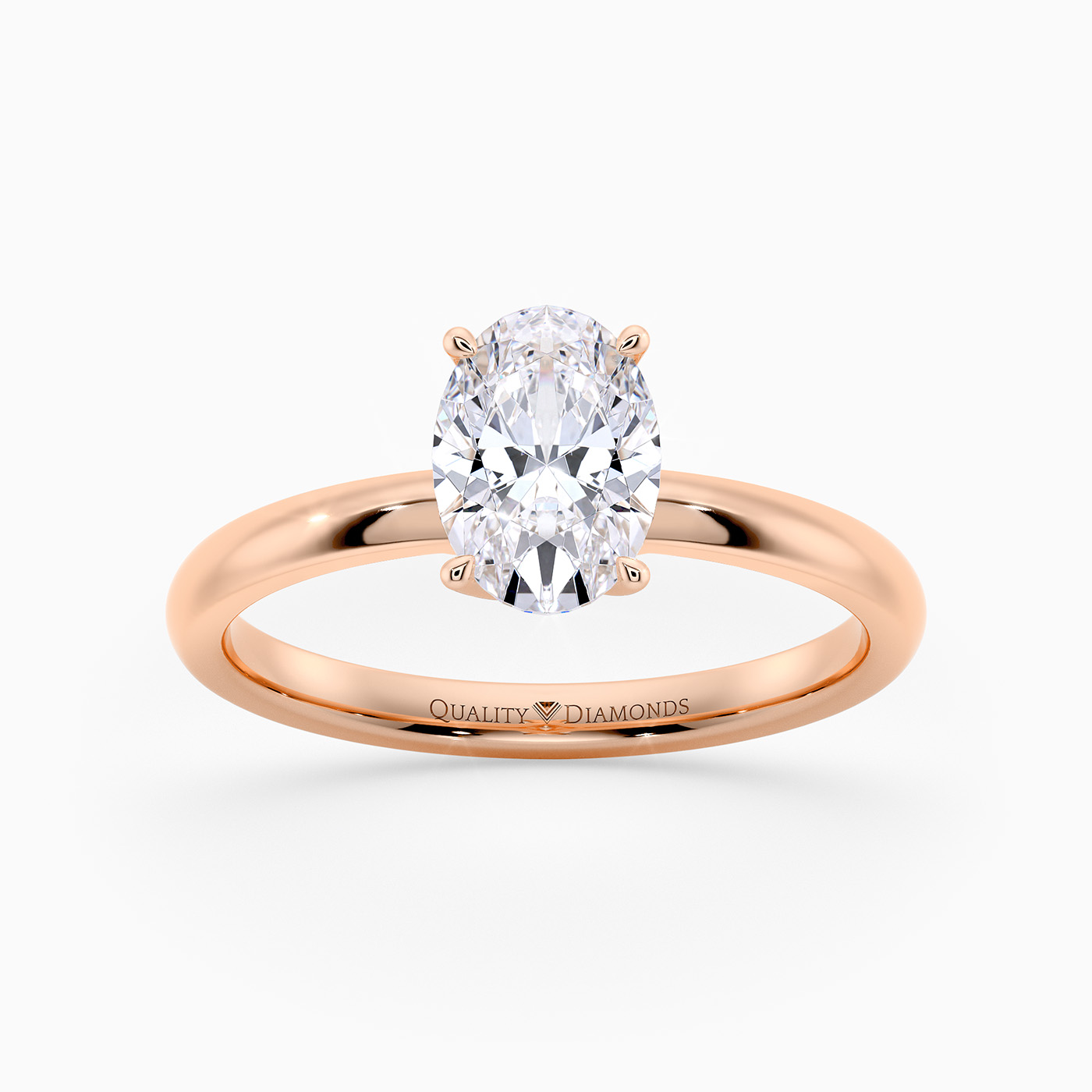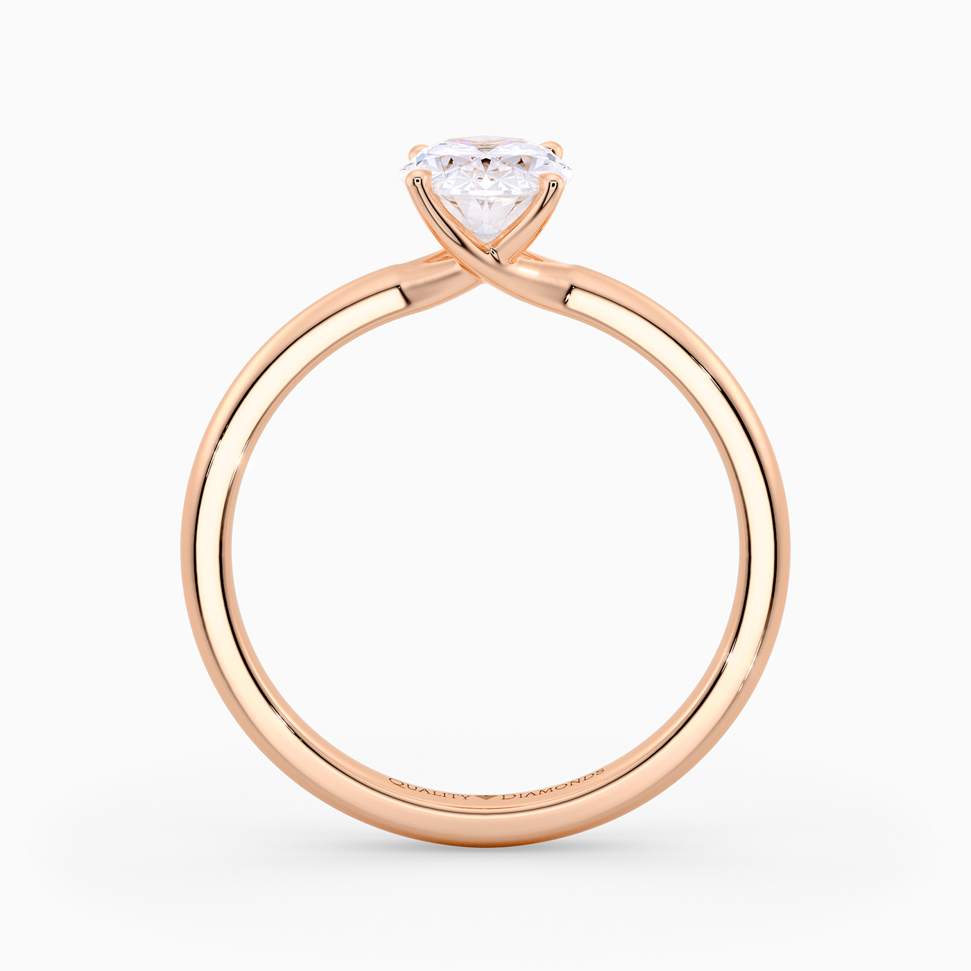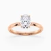 Our 18K Rose Gold solitaire Abbraccio holds the Oval diamond proudly in a flowing twist four-claw setting. The delicate prongs are positioned to maximise light passing through the diamond and produce the most exquisite sparkle.