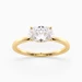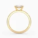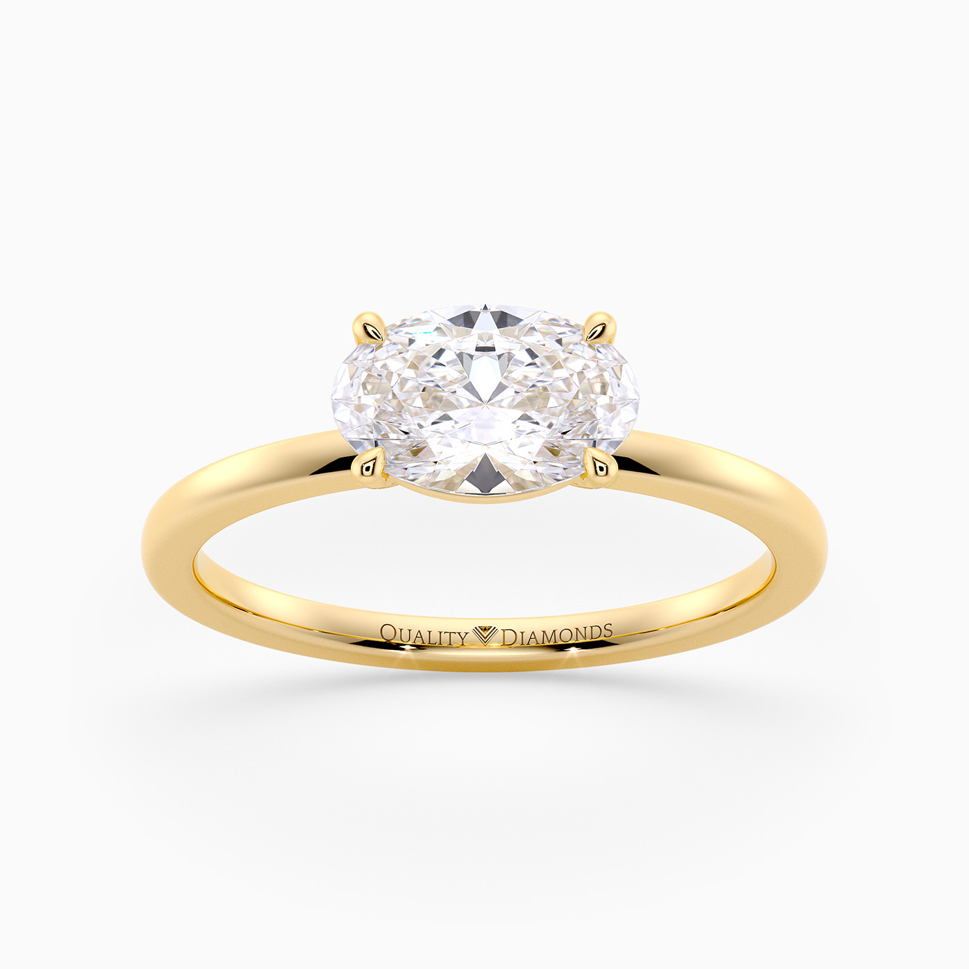 This elegant Oval east-west style 9K Yellow Gold Amada four-claw solitaire ring features a raised gallery that allows any wedding band to sit flush for a perfect fit.