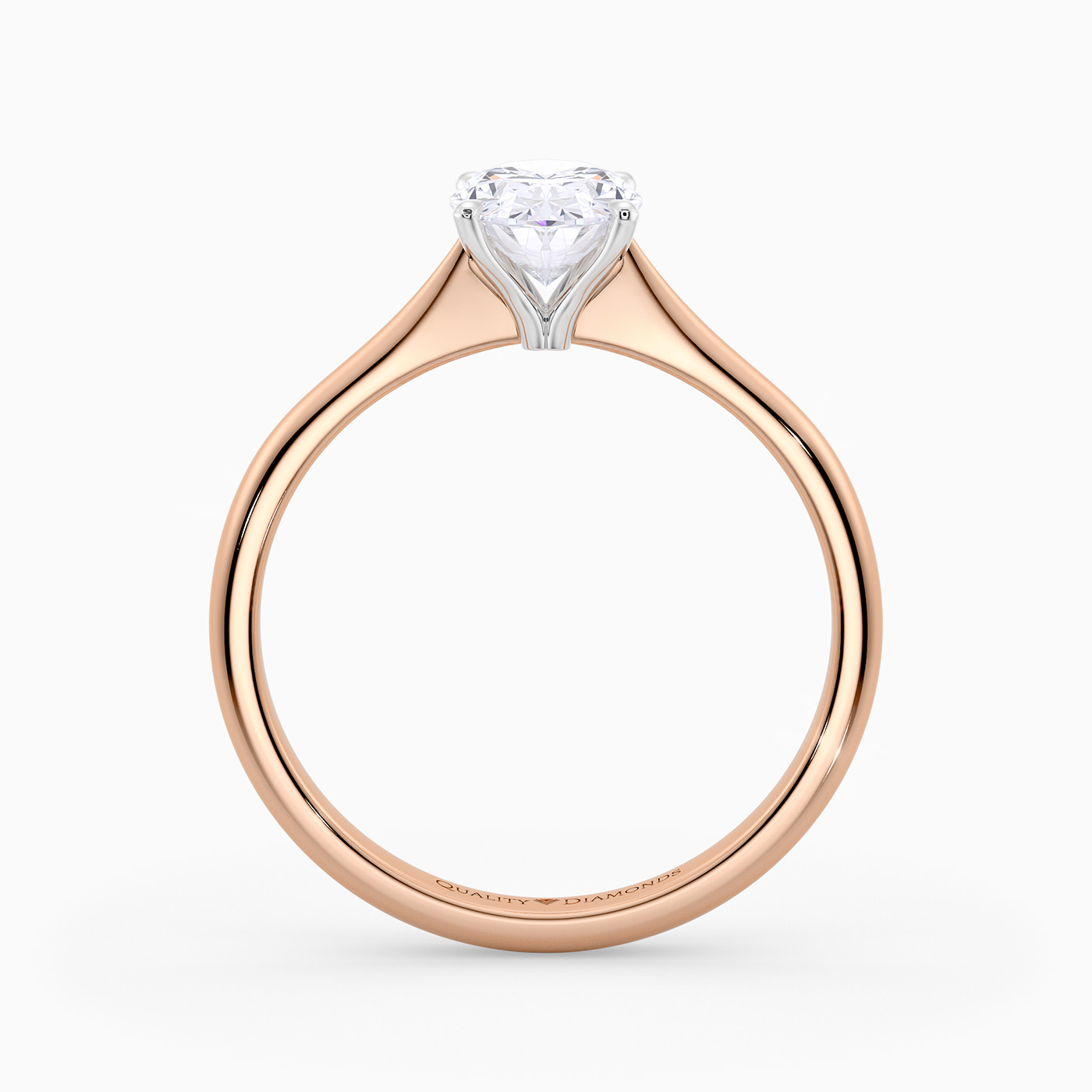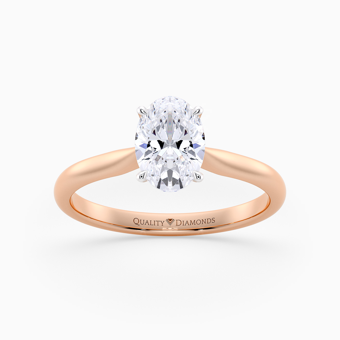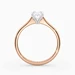 Our classic 18K Rose Gold solitaire Beau features an elegant four-claw setting to secure the Oval diamond, with the claws creating a V shape from the side detail to complement the sparkle. With no side bezel, this setting truly maximises the amount of light able to pass through the diamond.