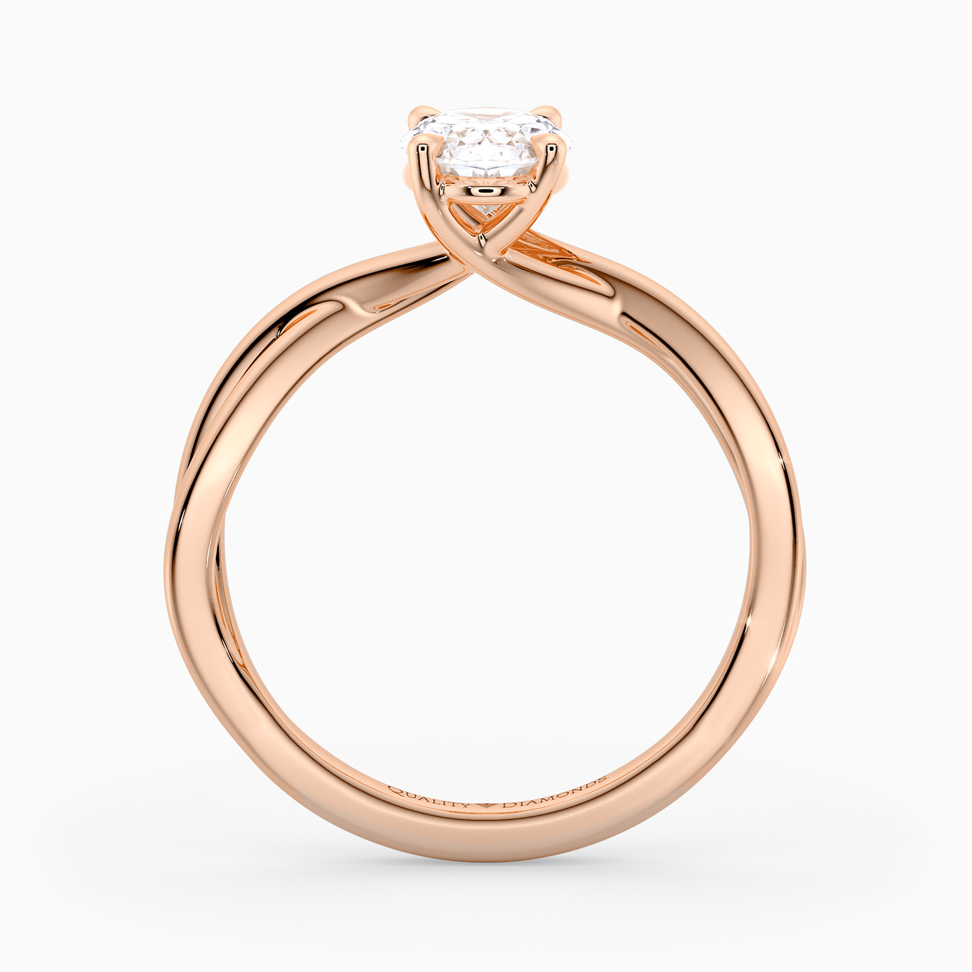 Our elegant 9K Rose Gold solitaire Grazia holds the Oval diamond in a delicate four-claw organic twist setting, creating a sense of movement and fluidity. The band gently splits as it rises towards the diamond, complementing its sparkle.