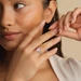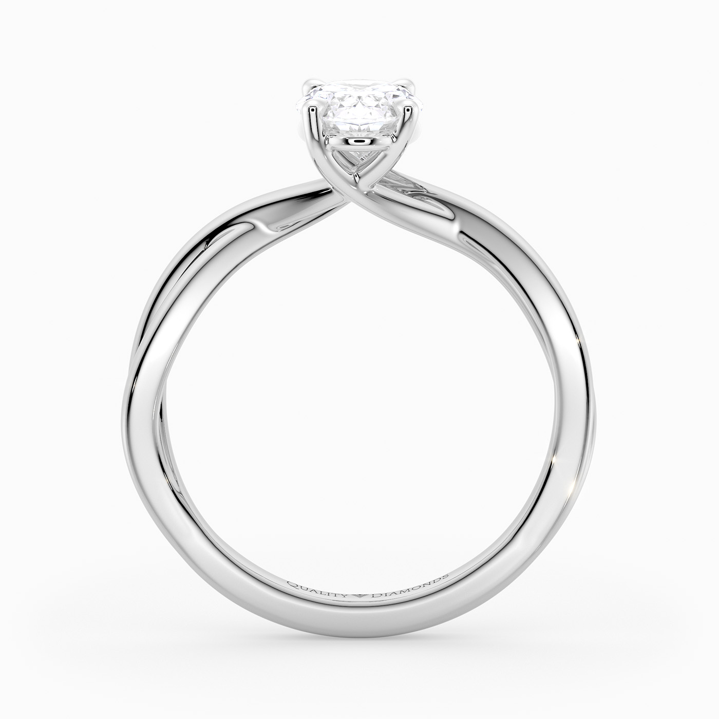 Our elegant Platinum solitaire Grazia holds the Oval diamond in a delicate four-claw organic twist setting, creating a sense of movement and fluidity. The band gently splits as it rises towards the diamond, complementing its sparkle.