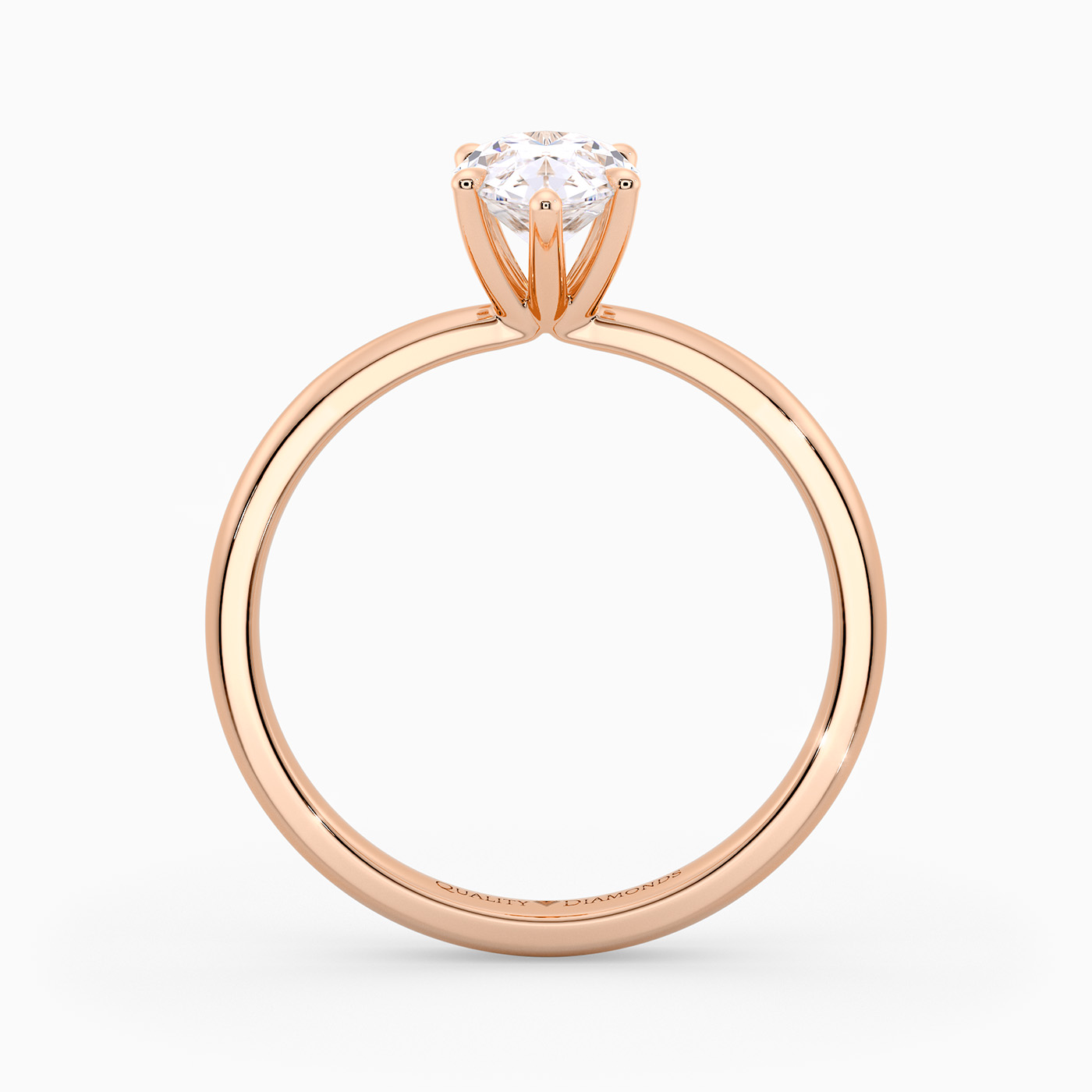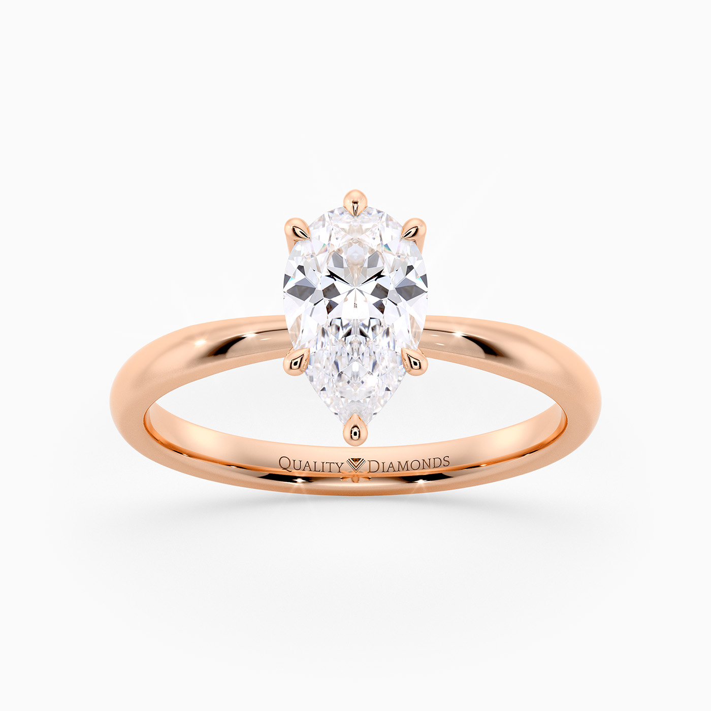 Our classic 18K Rose Gold solitaire Mirabelle holds the Pear diamond in an elegant V-shaped six-claw setting, securely cradling the diamond while allowing plenty of light to enter from the sides. The elevated, open setting enhances the stones brilliance and creates a timeless, sophisticated look with simple, flowing lines.