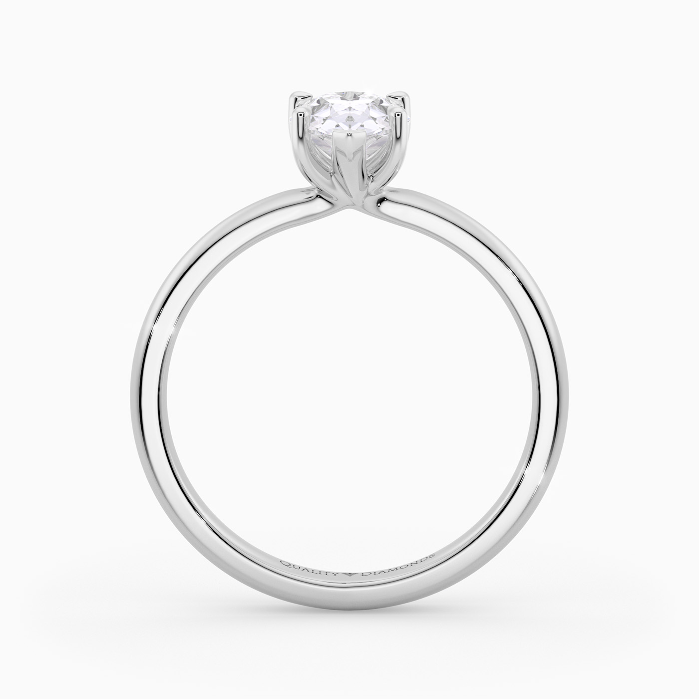 Our Platinum solitaire Abbraccio holds the Pear diamond proudly in a flowing twist six-claw setting. The delicate prongs are positioned to maximise light passing through the diamond and produce the most exquisite sparkle.