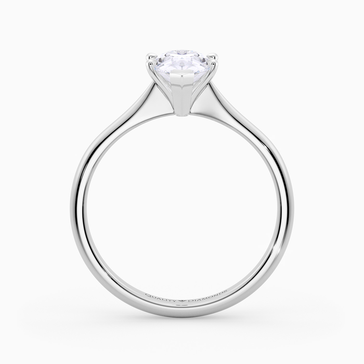 Our classic Platinum solitaire Beau features an elegant six-claw setting to secure the Pear diamond, with the claws creating a V shape from the side detail to complement the sparkle. With no side bezel, this setting truly maximises the amount of light able to pass through the diamond.