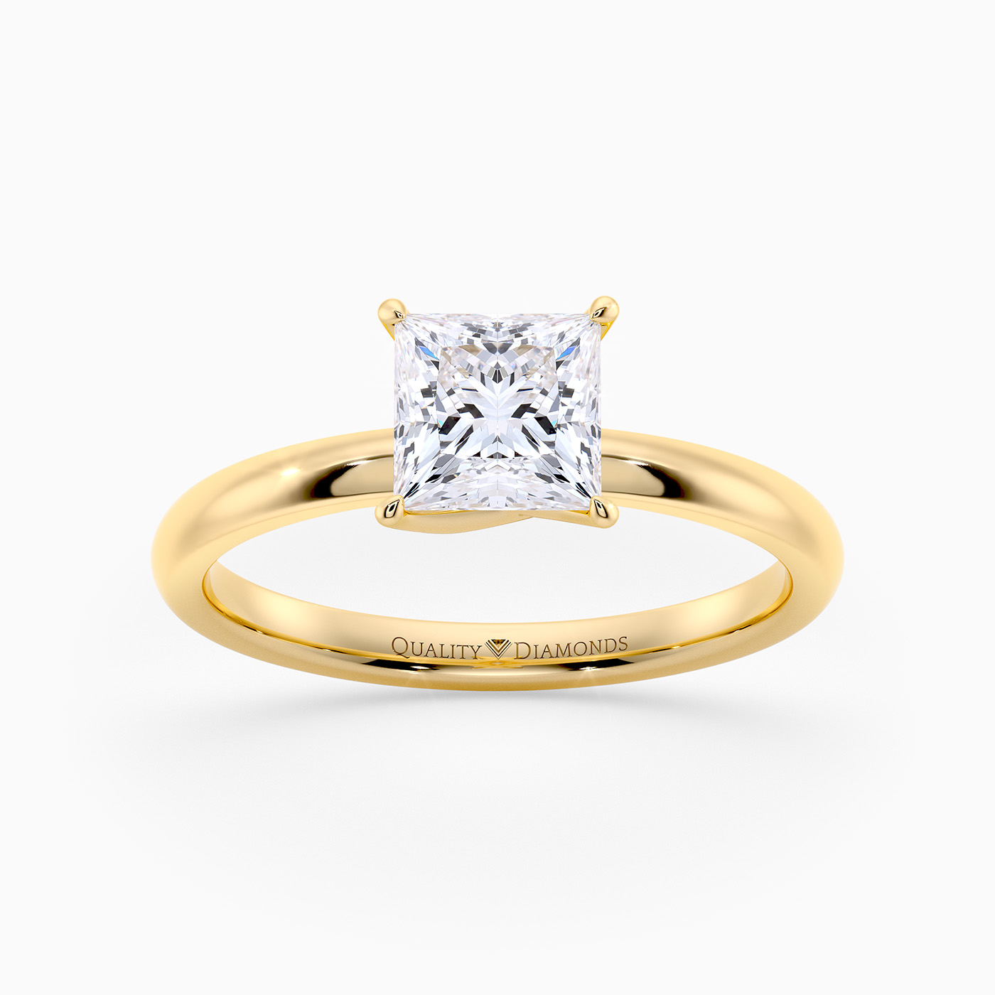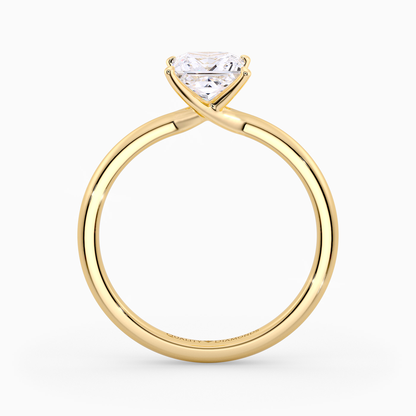 Our 18K Yellow Gold solitaire Abbraccio holds the Princess diamond proudly in a flowing twist four-claw setting. The delicate prongs are positioned to maximise light passing through the diamond and produce the most exquisite sparkle.
