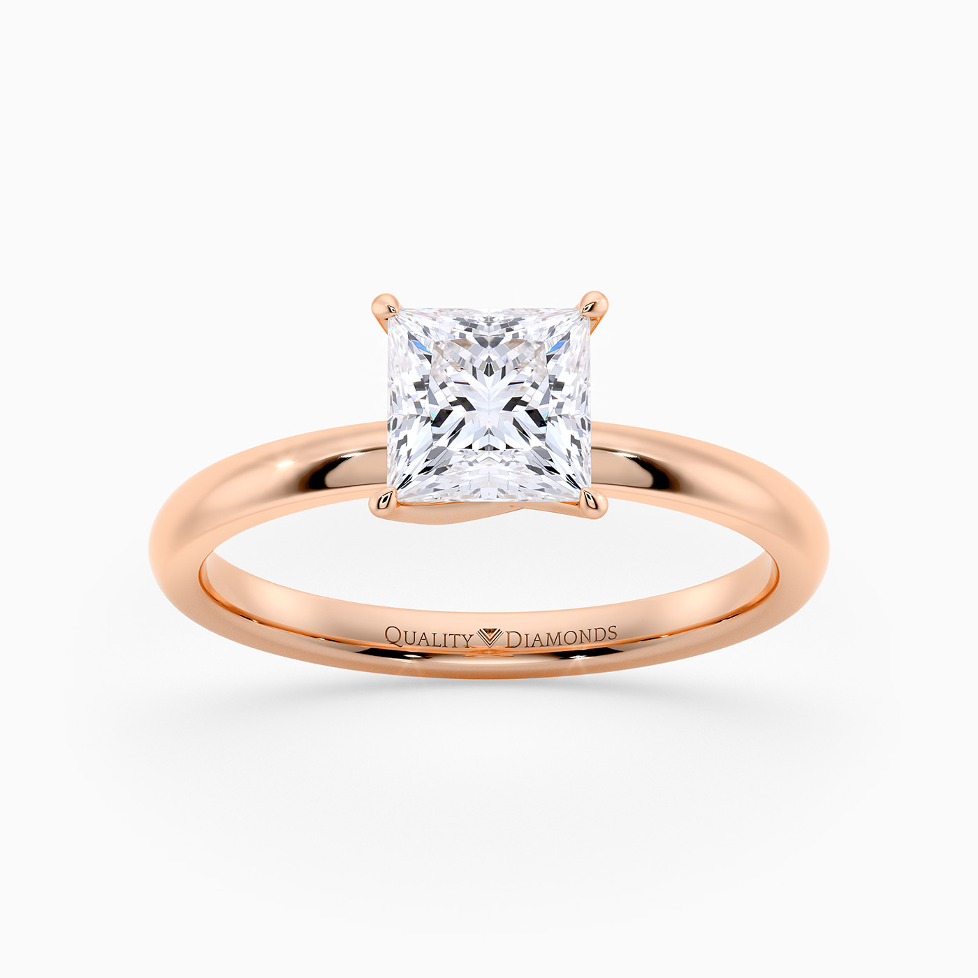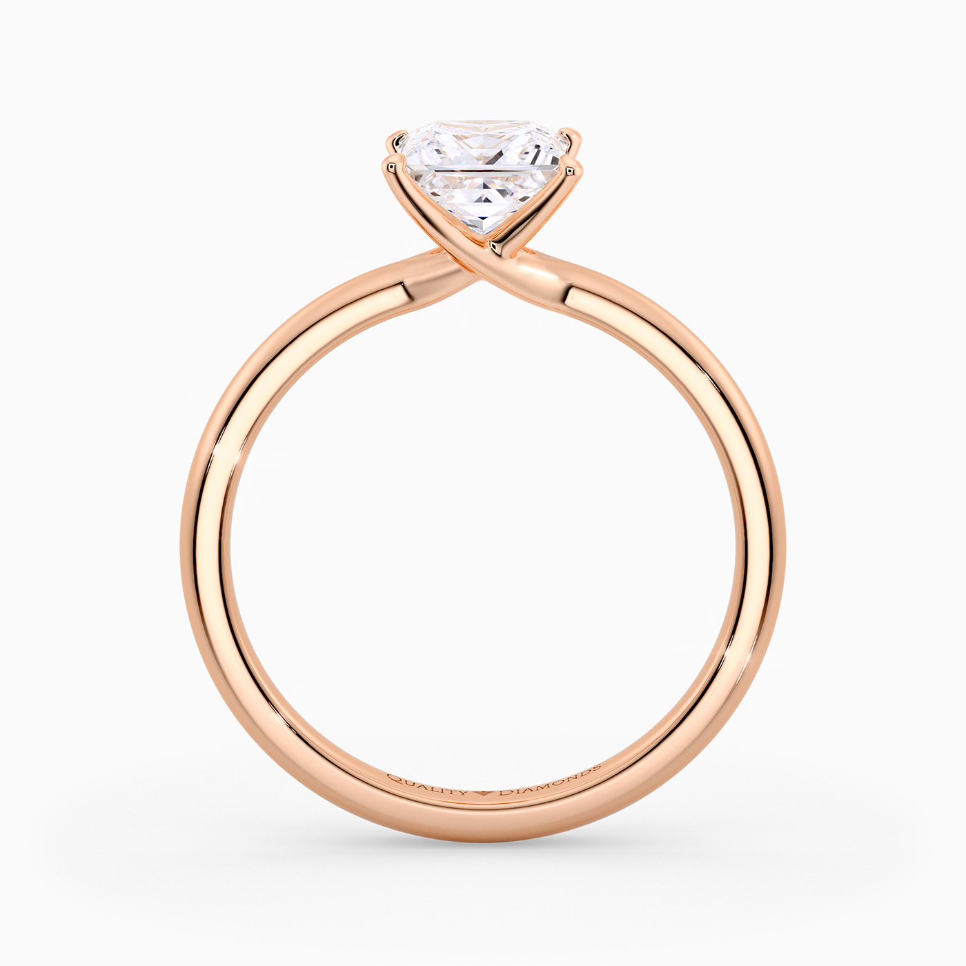 Our 9K Rose Gold solitaire Abbraccio holds the Princess diamond proudly in a flowing twist four-claw setting. The delicate prongs are positioned to maximise light passing through the diamond and produce the most exquisite sparkle.