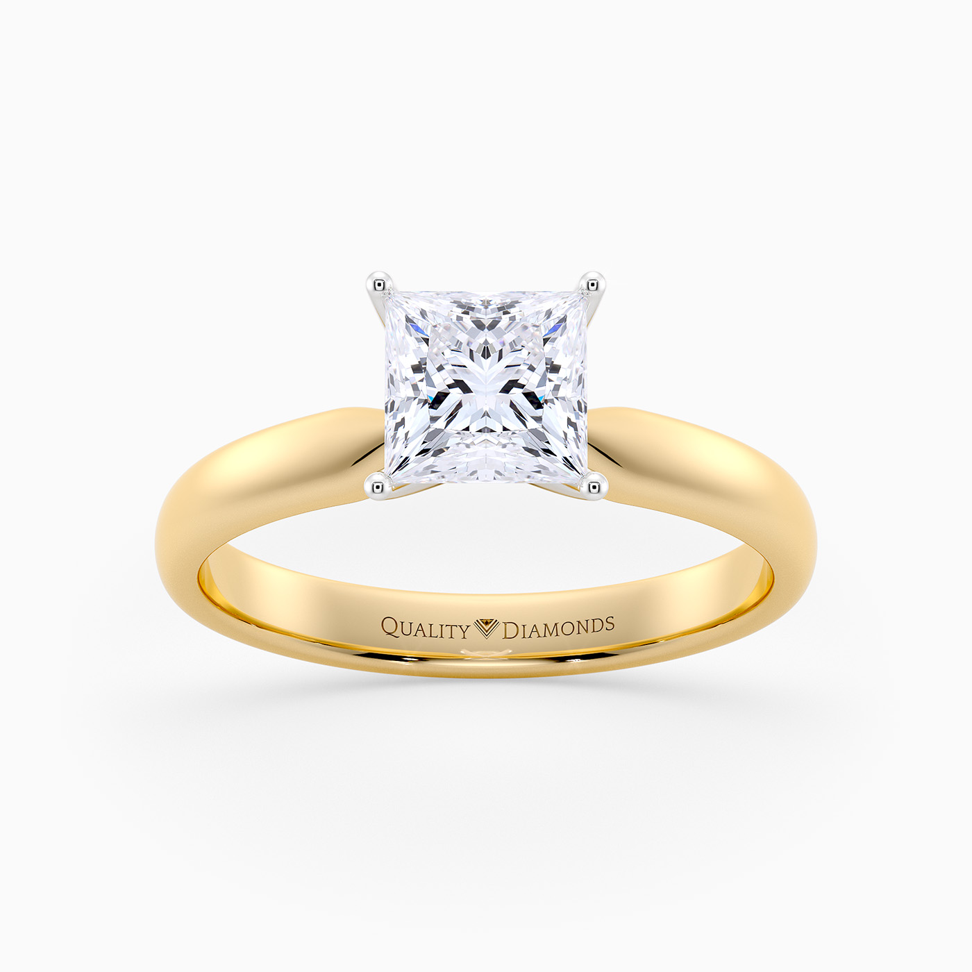 Our classic 9K Yellow solitaire Amia features a delicate four-claw Tiffany style setting to secure the Princess diamond. With the open detailing and delicate band this setting allows light to flood through the diamond maximising sparkle and brilliance.