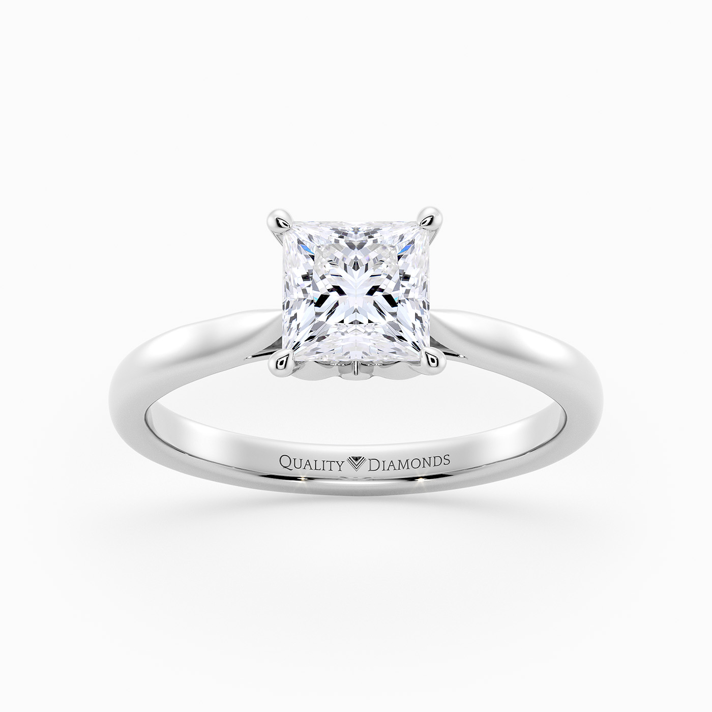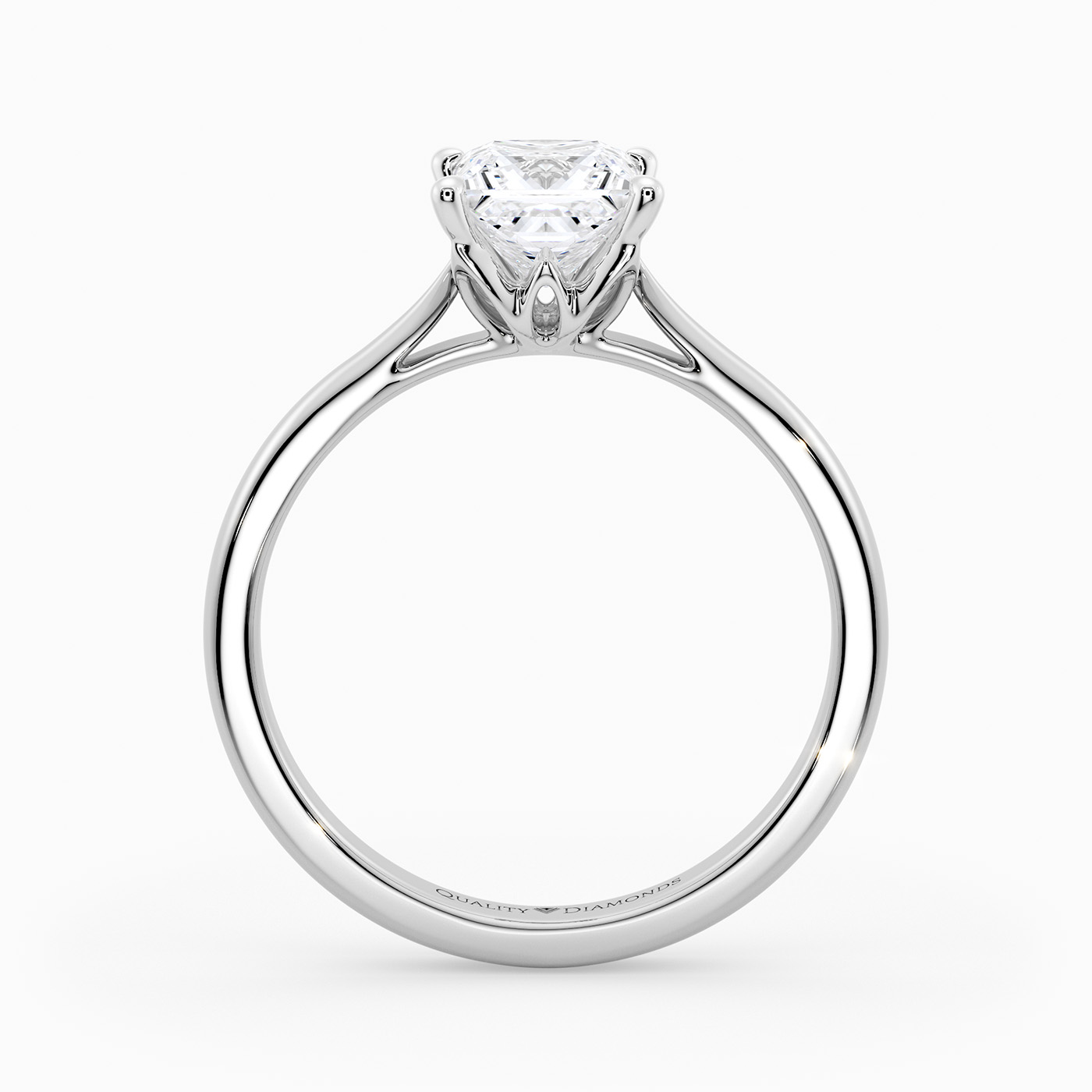 Our classic 9K White Gold solitaire Flor features a delicate, sculpted, floral four-claw setting for the Princess diamond. The classic court-shaped band splits and gently tapers, drawing attention to the diamond.