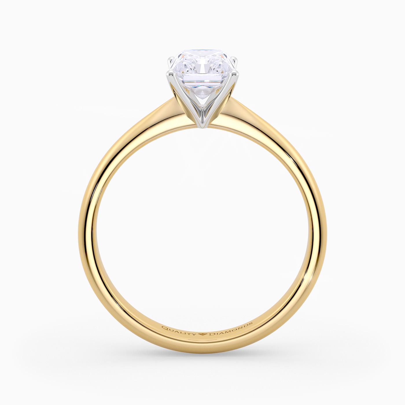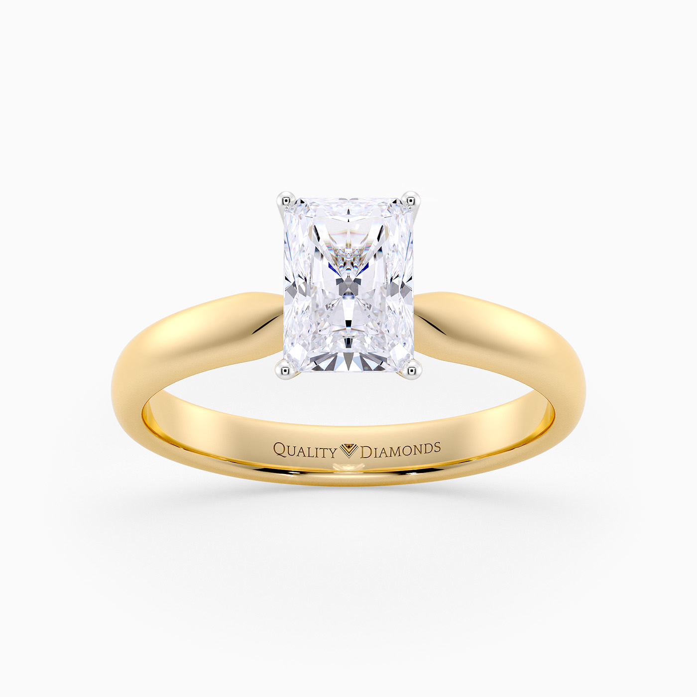 Our classic 9K Yellow solitaire Amia features a delicate four-claw Tiffany-style setting to secure the Radiant diamond. With the open detailing and delicate band, this setting allows light to flood through the diamond, maximising sparkle and brilliance.
