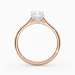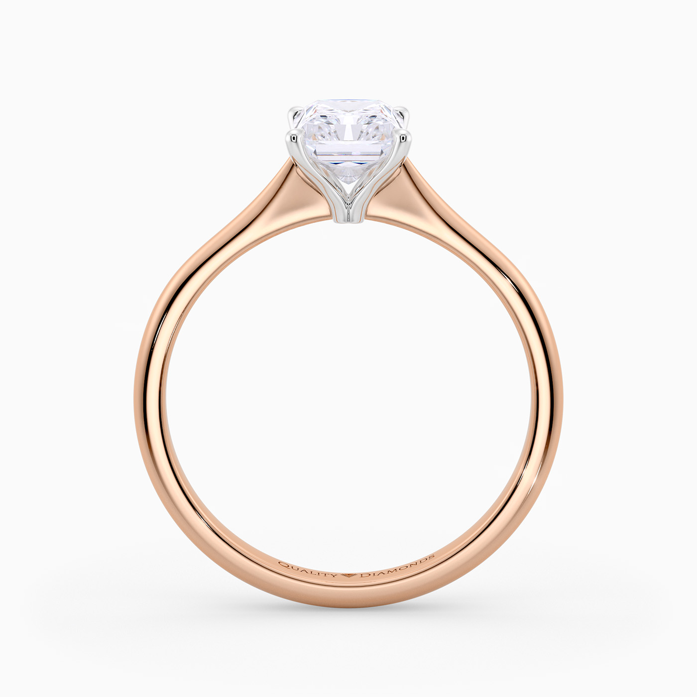 Our classic 18K Rose Gold solitaire Beau features an elegant four-claw setting to secure the Radiant diamond, with the claws creating a V shape from the side detail to complement the sparkle. With no side bezel, this setting truly maximises the amount of light able to pass through the diamond.