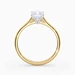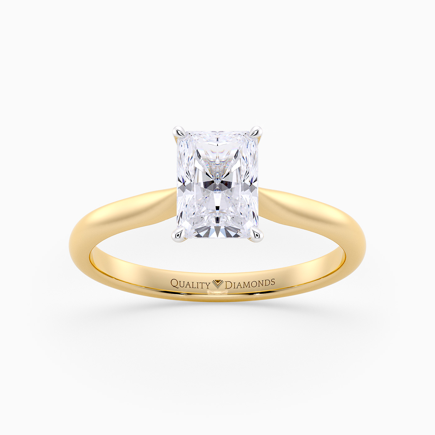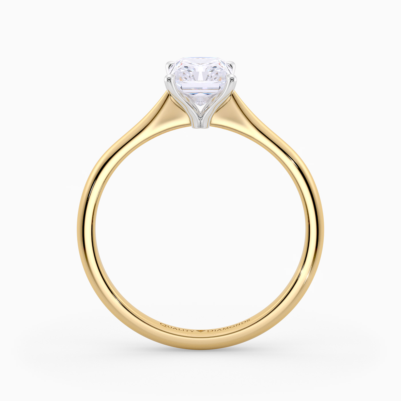 Our classic 18K Yellow Gold solitaire Beau features an elegant four-claw setting to secure the Radiant diamond, with the claws creating a V shape from the side detail to complement the sparkle. With no side bezel, this setting truly maximises the amount of light able to pass through the diamond.