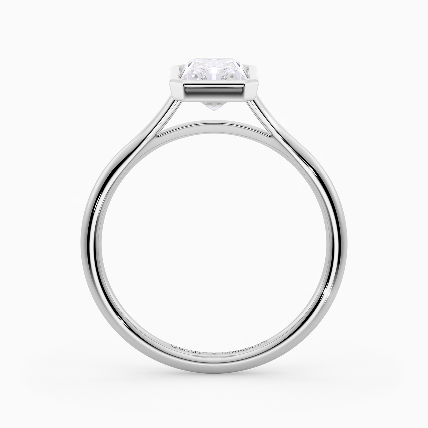 Our contemporary Platinum solitaire Carina holds the Radiant diamond in a modern bezel setting, complementing the elegant design. The rounded band finishes off the contemporary design beautifully.