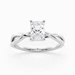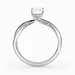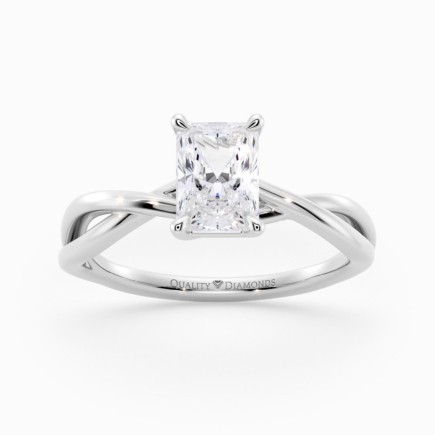 Our elegant Platinum solitaire Grazia holds the Radiant diamond in a delicate four-claw organic twist setting, creating a sense of movement and fluidity. The band gently splits as it rises towards the diamond, complementing its sparkle.