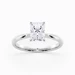 Our classic Platinum solitaire Mirabelle holds the Radiant diamond in an elegant V-shaped four-claw setting, securely cradling the diamond while allowing plenty of light to enter from the sides. The elevated, open setting enhances the stones brilliance and creates a timeless, sophisticated look with simple, flowing lines.