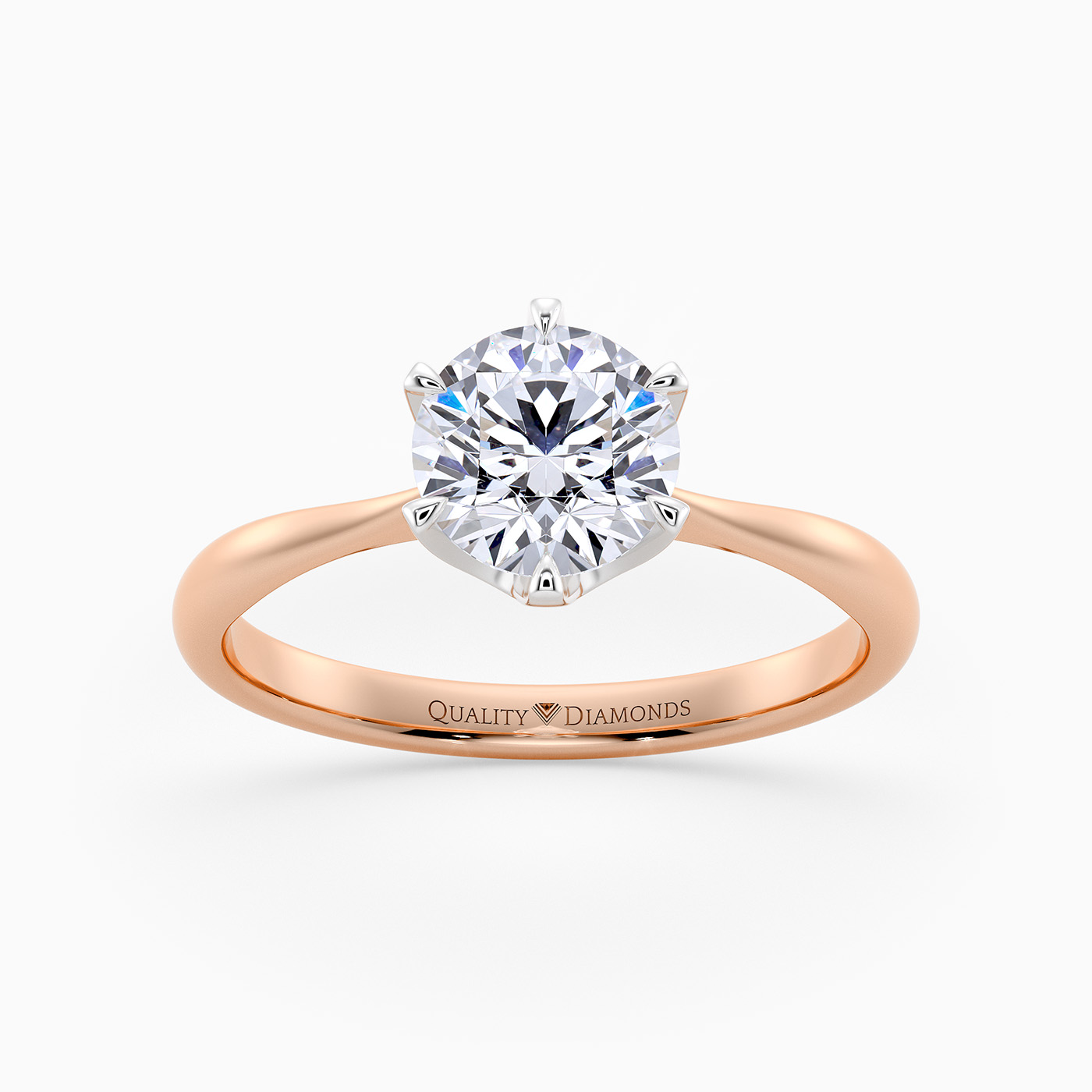 Round Brilliant Six Claw Bellezza Diamond Ring in 9K Rose Gold