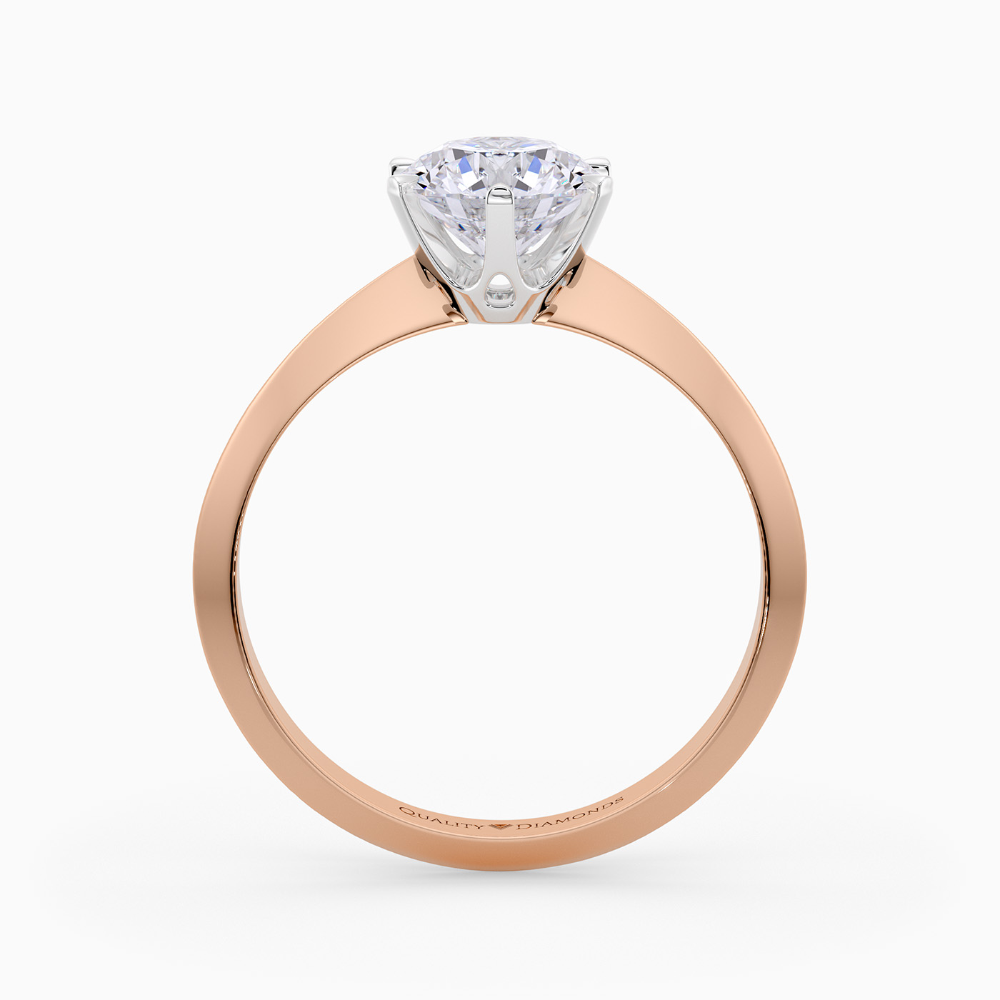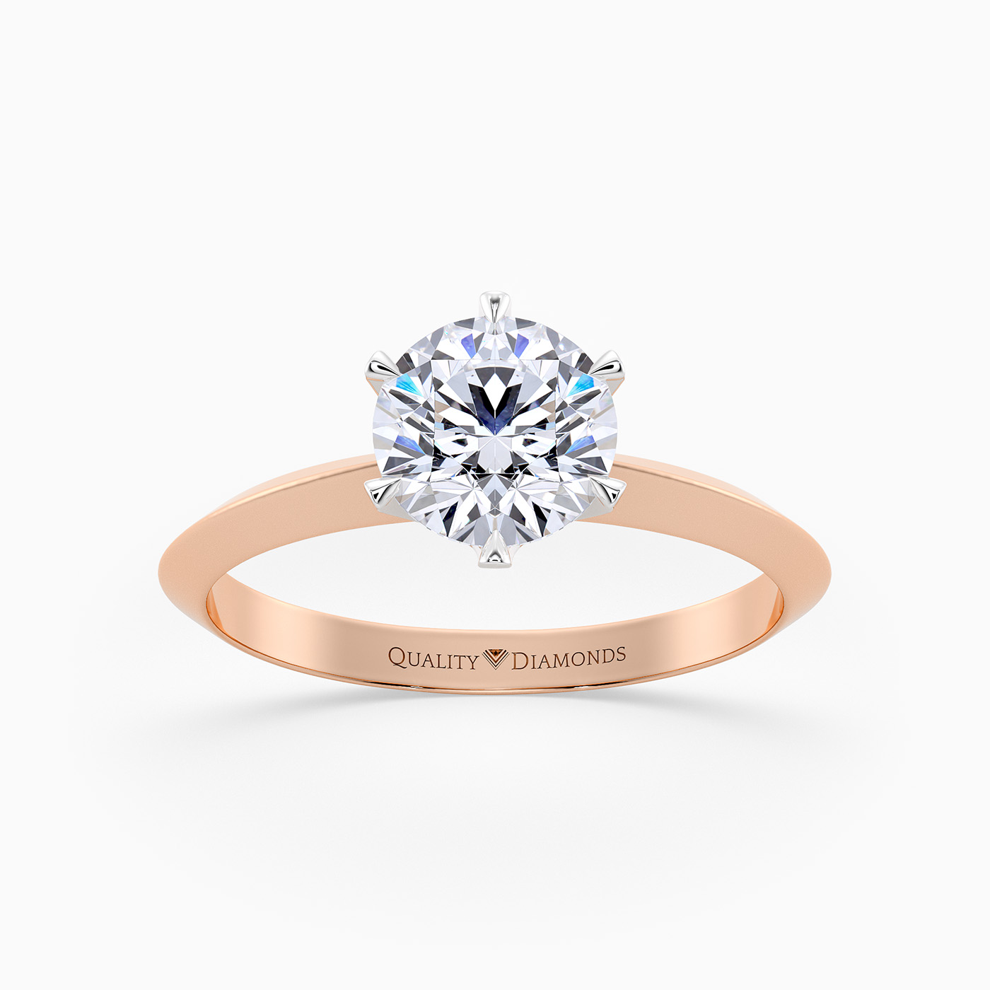 Our classic 18K Rose Gold solitaire Carella holds the Round Brilliant diamond proudly in a secure six-claw setting, to complement the sparkle. The shoulders taper to a knife-edge, elevating the diamond to fully display its dramatic beauty.