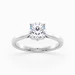 Our classic Palladium solitaire Flor features a delicate, sculpted, floral four-claw setting for the Round Brilliant diamond. The classic court-shaped band splits and gently tapers, drawing attention to the diamond.