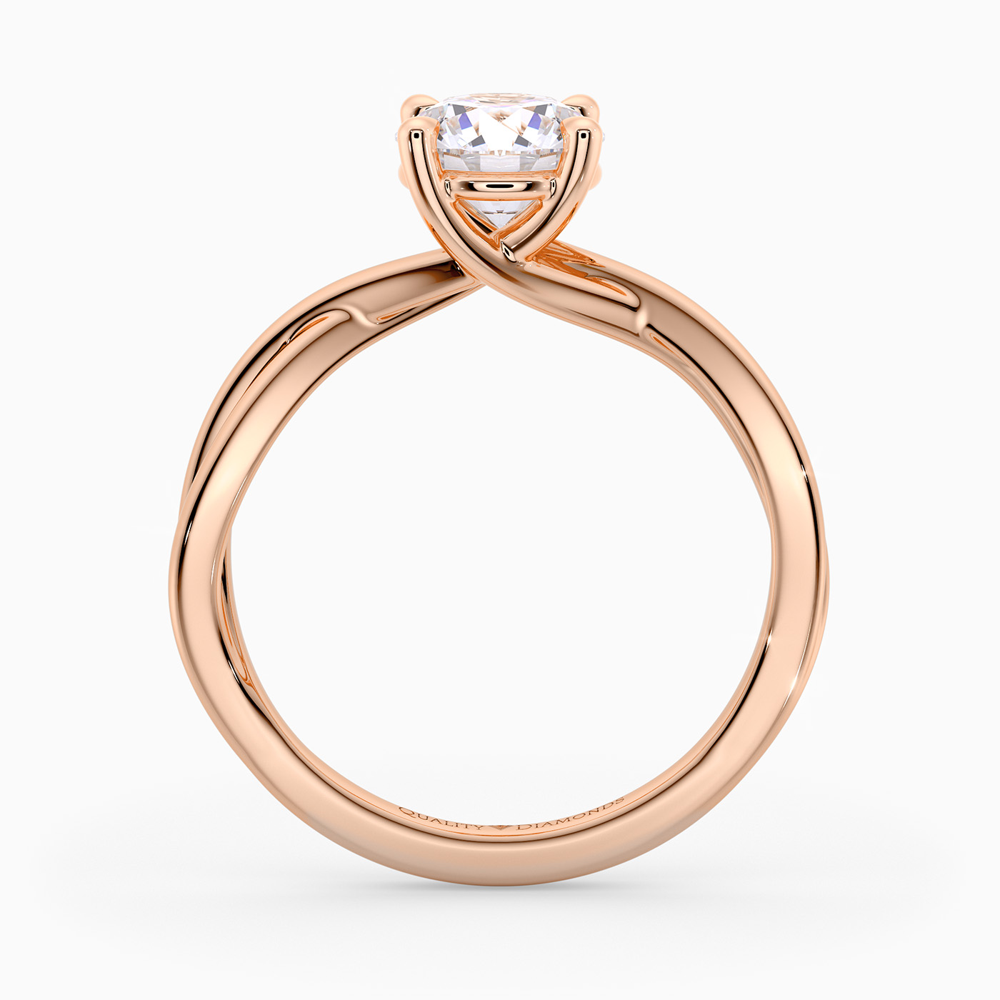 Our elegant 9K Rose Gold solitaire Grazia holds the Round Brilliant diamond in a delicate four-claw organic twist setting, creating a sense of movement and fluidity. The band gently splits as it rises towards the diamond, complementing its sparkle.